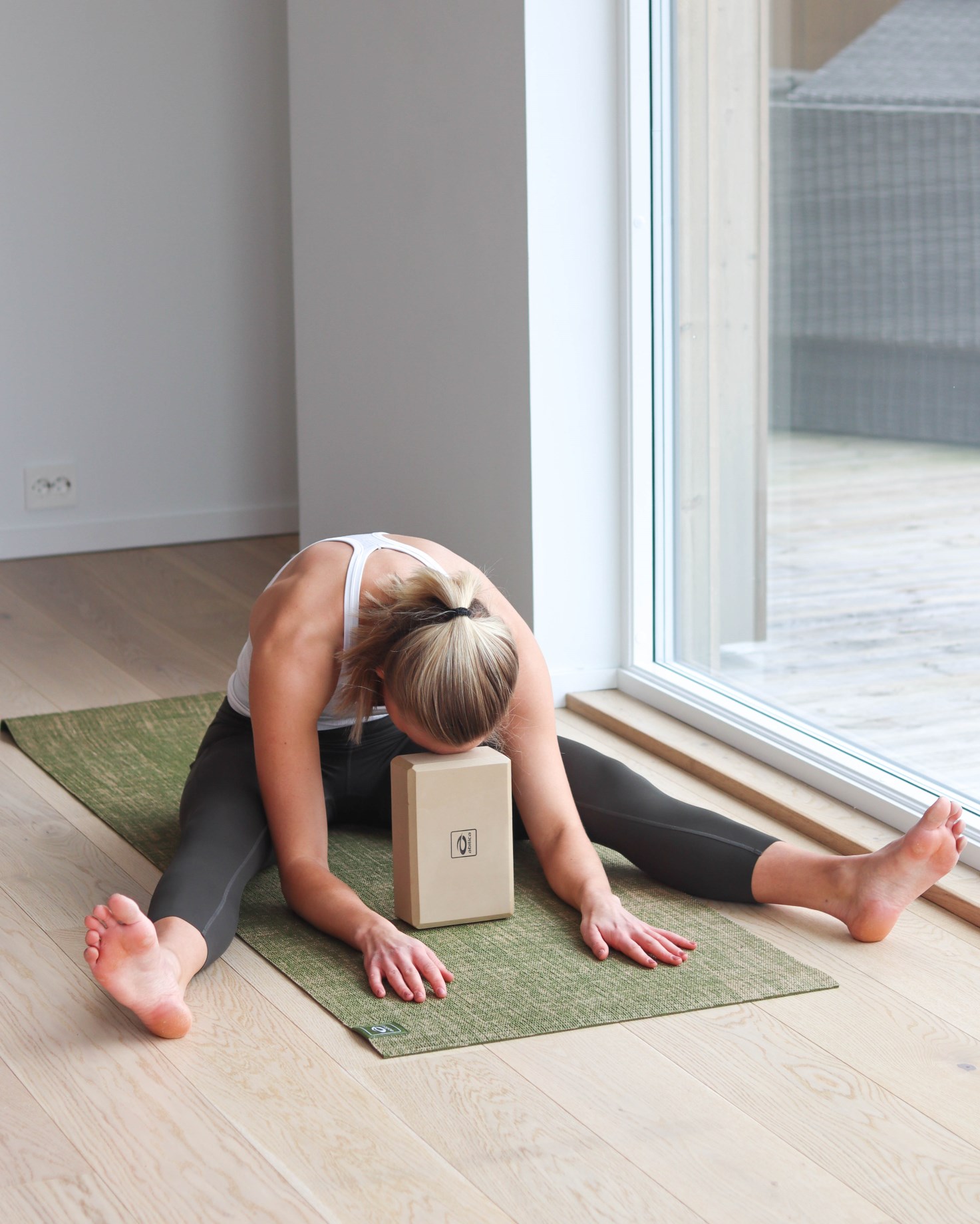 Vinkki! Jos olet joustamaton lantiosi alueelta ja et voi istua polvillasi, voit esimerkiksi istua joogablockin päällä. Tällä tavoin muutat lantion ja lantionkulmaa. Joogahihnaa voi käyttää käsien ja jalkojen jatkeena, mutta myös apuvälineenä erilaisissa venyttelyissä, liikkuvuusharjoituksissa.