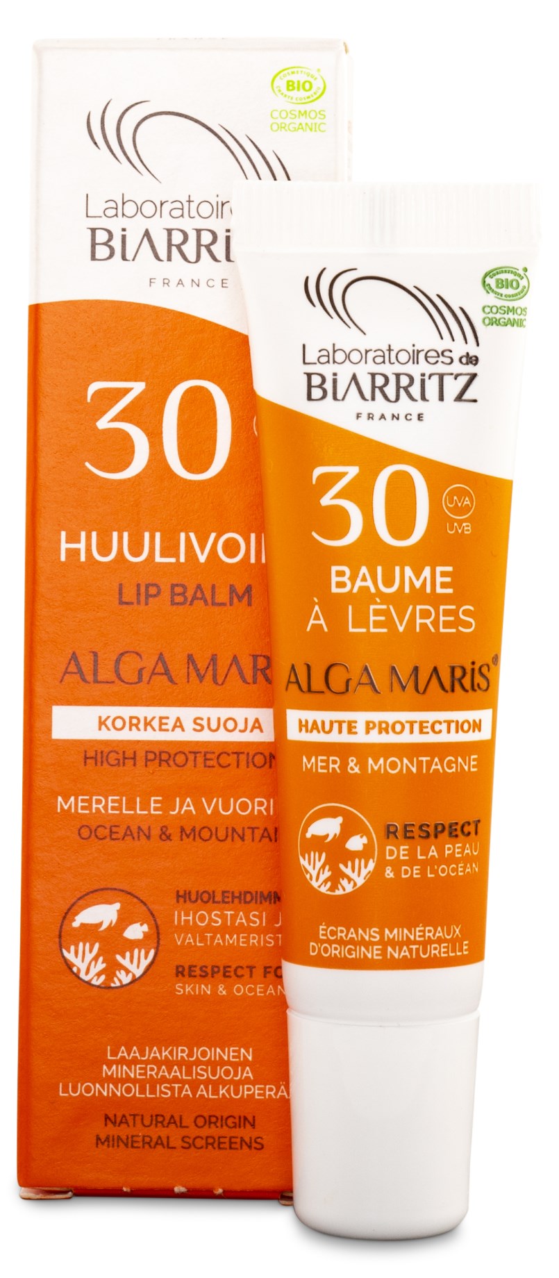 Suojaa huulesi auringolta Alga Maris SPF30 Ocean & Mountain Lip Balm -huulivoiteella, ihoa sävyttävällä SPF30-huulirasvalla. Suojaa haitallisilta UVA/UVB-säteiltä sekä vapailta radikaaleilta. Tämä huulirasva-suojavoide on veden-, hien- ja tuulenkestävä, mikä tekee siitä sopivan kaikkiin aurinkoisiin aktiviteetteihin. Huulivoide on säilöntäaineeton ja tuoksuton. Lisäksi 100 % ainesosista on luonnollista alkuperää. Luomusertifioitu ECOCERTin toimesta.