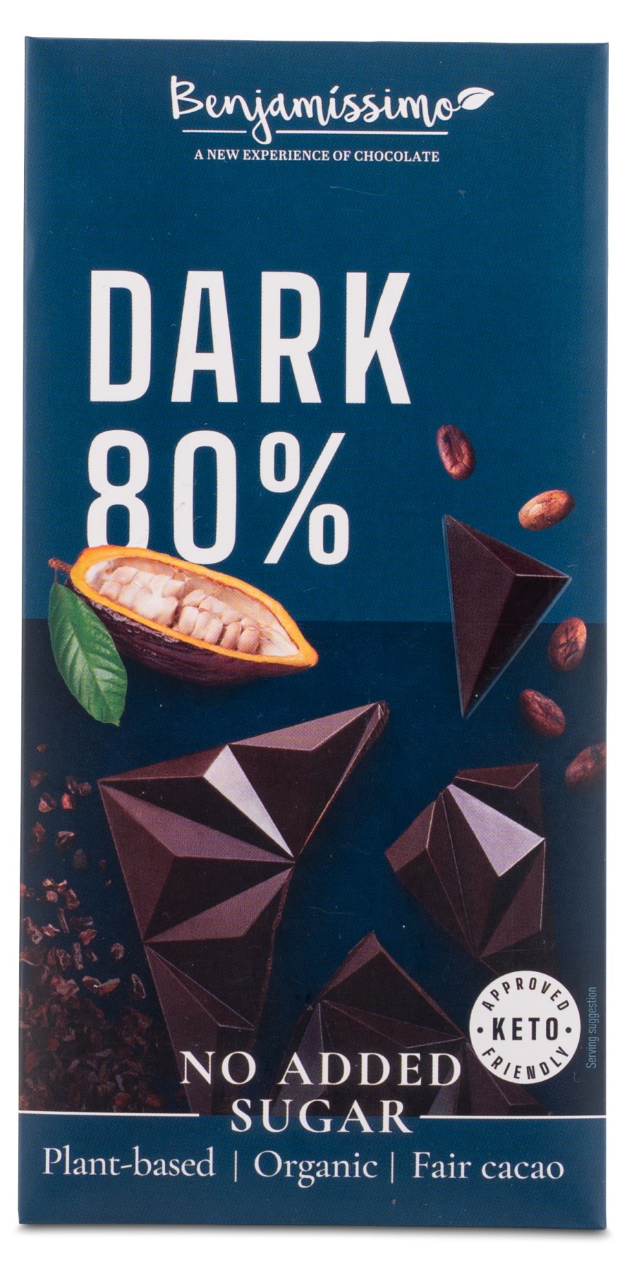 Benjamissimo Sokeriton Suklaa on ketoon sopivaa, pehmeää suklaata, joka on valmistettu joistakin parhaista kasvipohjaisista ja luomuraaka-aineista. Suklaa on makeutettu luonnollisella ja kalorittomalla makeutusaineella nimeltä erytritoli ja se on 100 % vegaanista, luomua ja gluteenitonta. Benjamissimolla on suklaata useissa jännittävissä mauissa, ja se tarjoaa sinulle herkullisia makuelämyksiä, jotka ylittävät tavallisen, jokaisessa palassa!