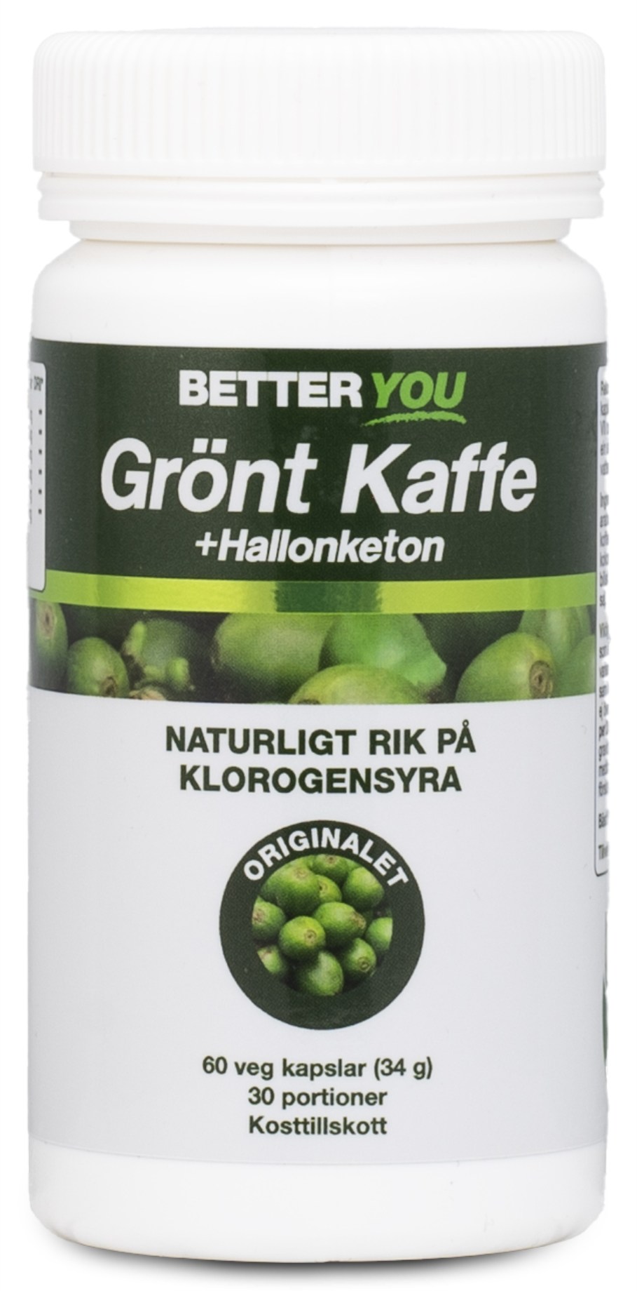 Better You Vihreä Kahvi + Vadelmaketoni sisältää täydellisen sekoituksen uutteita vihreistä kahvipavuista ja vadelmaketonista. Yksi annostus sisältää 500 mg vihreää kahvin uutetta ja 400 mg vadelmaketonia, molemmat täysin luonnollisista lähteistä. Kapselit ovat täysin kasviperäisiä ja ruotsalaisen Djurens rätt (Eläinten oikeudet) -järjestön hyväksymiä. Better You Vihreä Kahvi + Vadelmaketoni -valmistetta suositellaan otettavaksi kaksi kapselia päivässä.