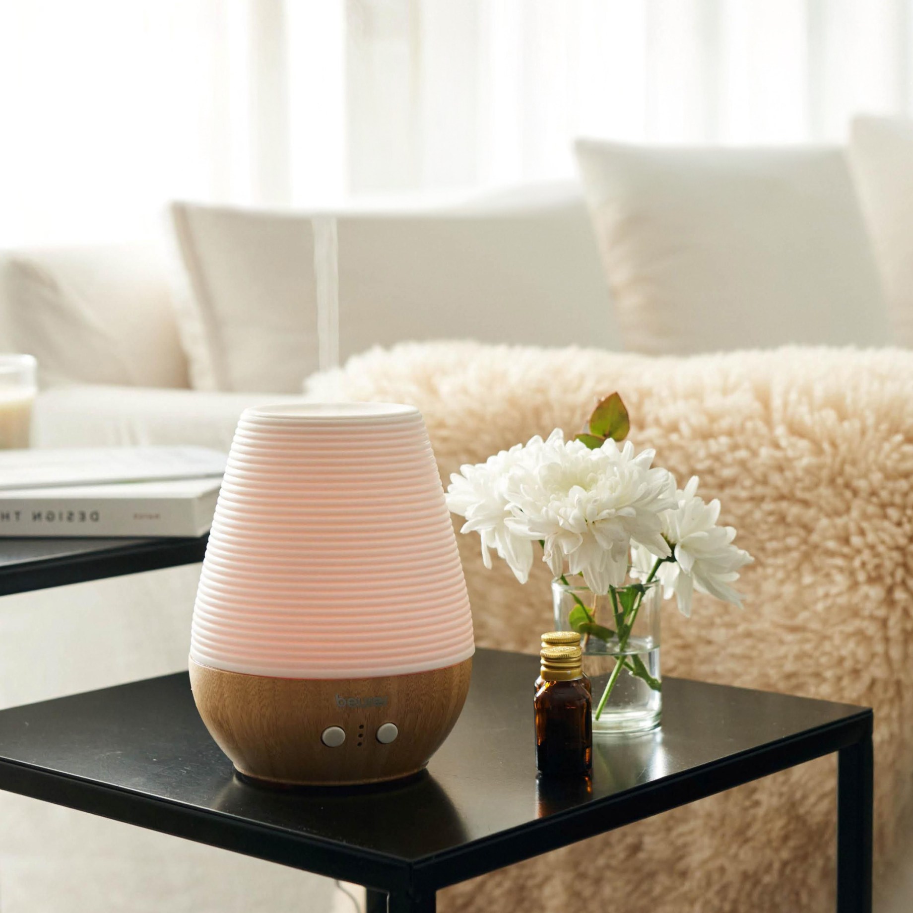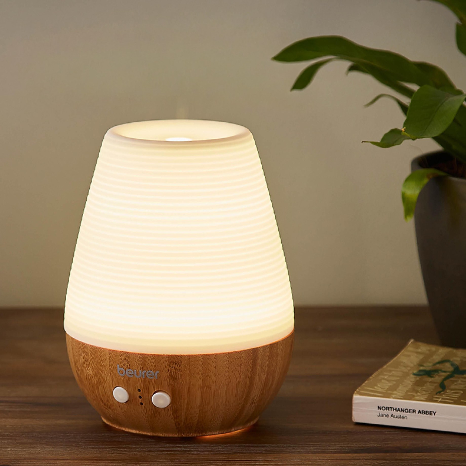 Beurer Diffuuseri LA 40 on aromilamppu, jonka avulla voit helposti levittää lempieteeristen öljyjesi tuoksua kotona. Diffuuseria käytetään vesiliukoisten aromaöljyjen kanssa ja siinä on myös värinvaihtuva LED-valo, jonka voit asettaa tunnelman ja mielialan mukaan. Koska difuuseri on hiljainen, voit käyttää sitä luomaan rauhoittavan ilmapiirin esimerkiksi makuuhuoneeseen. Lamppu on valmistettu posliinista ja aidosta bambusta, ja siinä on tyylikäs muotoilu, joka tekee siitä hienon sisustuselementin.