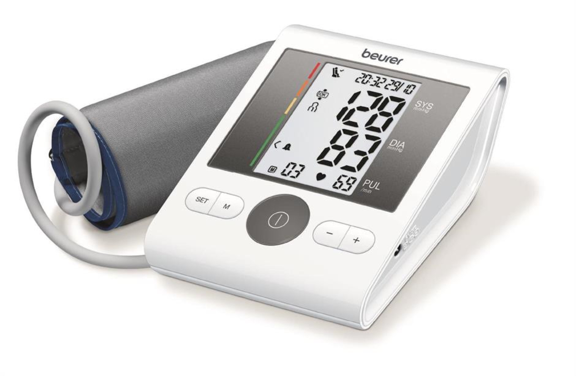 Beurer Verenpainemittari BM 28:n avulla voit helposti seurata verenpainettasi itse. Tämä täysin automaattinen verenpainemittari asetetaan olkapäälle, jossa se mittaa systolista ja diastolista painetta sekä pulssia. Se havaitsee myös ja varoittaa rytmihäiriöistä (epäsäännöllinen sydämen rytmi). Mittarissa on 4 x 30 muistipaikkaa, jotka antavat sinulle mahdollisuuden nähdä keskimääräisen verenpainearvosi kaikista tallennetuista verenpainetuloksista. Säilytyskotelo ja paristot sisältyvät pakkaukseen.