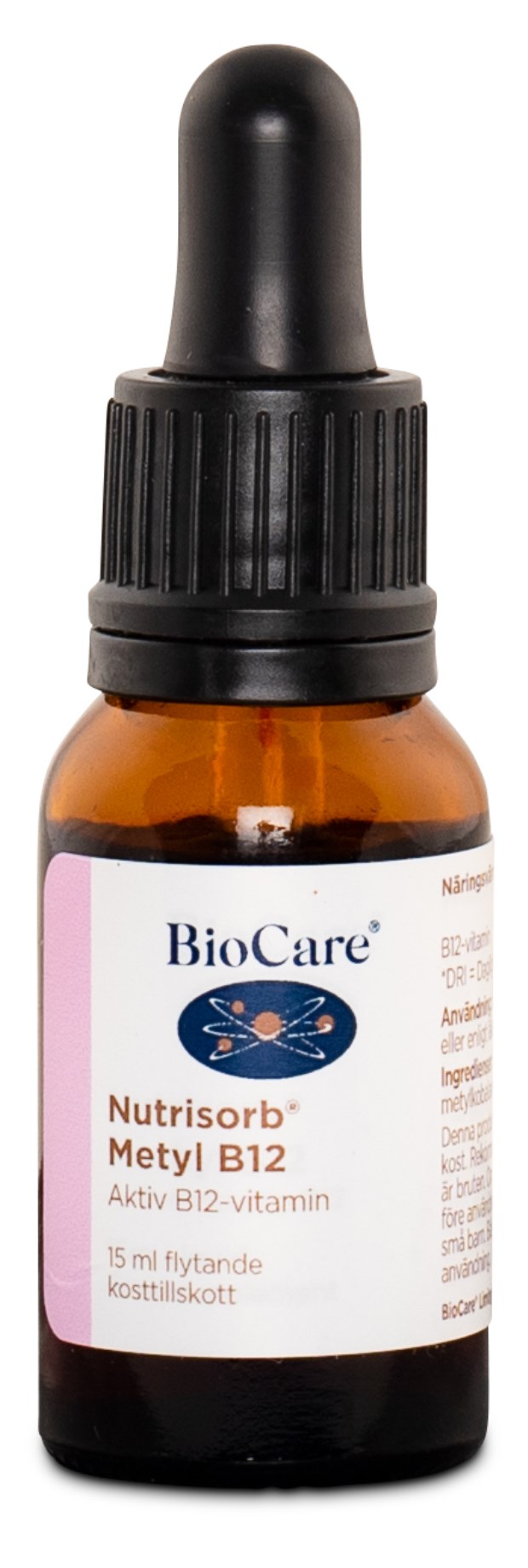 BioCare Nutrisorb Liquid Methyl B12 on kätevä ja korkea-annoksinen B12-vitamiinilisä nestemäisessä muodossa. B12-vitamiini auttaa vähentämään väsymystä ja se edistää normaalia solujen jakautumista, psykologisia toimintoja ja verisolujen muodostusta. B12-vitamiinia löytyy useimmiten eläinperäisistä tuotteista, joten B12-vitamiinilisä voi olla erityisen tärkeä vegetaristeille ja vegaaneille. Jos sinulla on vaikeuksia niellä tabletteja ja kapseleita, BioCare Nutrisorb Liquid Methyl B12 on täydellinen valinta sinulle, joka haluat lisätä B12-vitamiinitasoja. Lisää lisäravinne haluamaasi juomaan tai suoraan kielen alle. Korkean biologisen hyötyosuuden ansiosta!