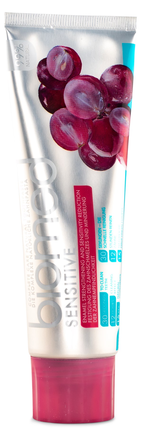 Biomed Hammastahna Sensitive on vegaaninen ja luonnollinen hammastahna sinulle, jolla on erityisen herkät hampaat. Hammastahna puhdistaa hellävaraisesti kuluttamatta hammaskiillettä. Se sisältää öljyä punaviinin rypäleistä ja hydroksiapatiittia, mineraalia, joka auttaa rakentamaan hammaskiillettä. Hammastahnassa on raikas maku, joka tulee sitrusöljystä. Luonnollisten ainesosiensa ansiosta se on täydellinen hammastahna sinulle, joka haluat välttää tarpeettomia lisäaineita hampaidenharjausrutiinissasi.