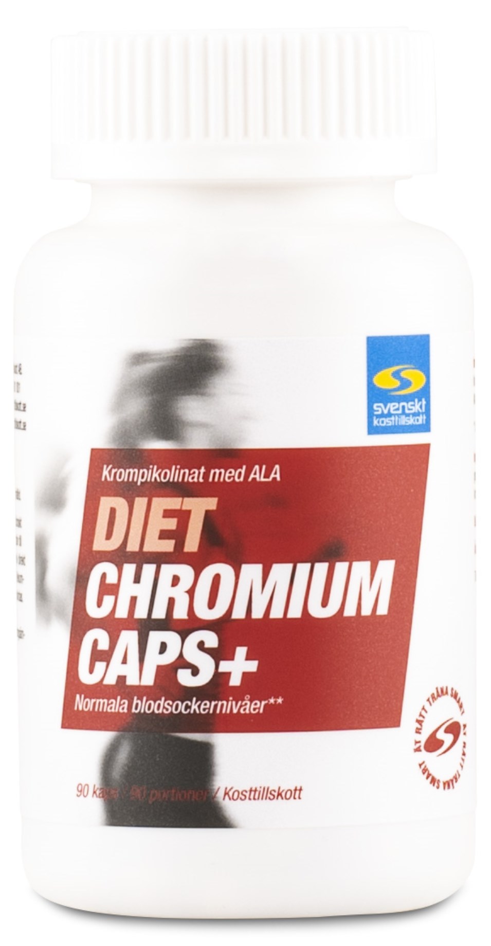 Diet Chromium Caps+ on kromia pikolinaattimuodossa sekä lisättyä alfa-lipoiinihappoa sisältävä ravintolisä. Kromi edistää normaalia verensokeritasoa ja makroravinteiden aineenvaihduntaa. Diet Chromium Caps+ sisältää 200 mcg krompikolinaattia per kapseli.