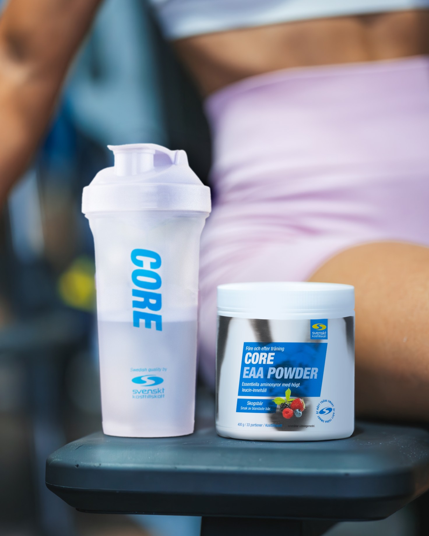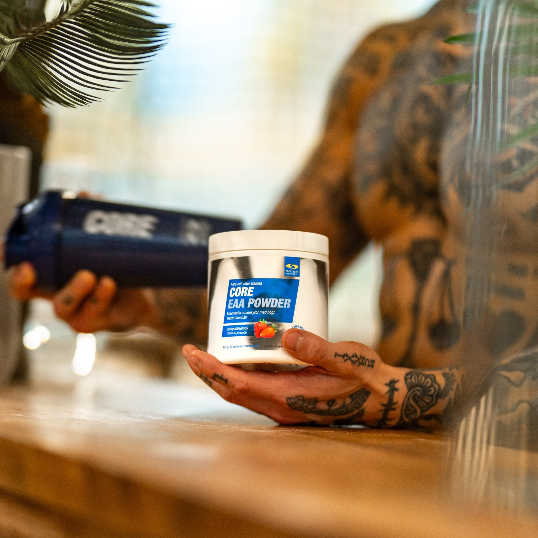 Välttämättömät aminohapot, EAA, ovat elintärkeitä, jotta keho voi rakentaa lihasmassaa. EAA löytyy korkealaatuisista proteiinilähteistä, mutta Core EAA Powderissa saat ne vapaassa muodossa, jolloin ne imeytyvät erittäin nopeasti, mikä on monia etuja. Core on tasapainottanut tuotteen hyvin, mukana on korkein pitoisuus L-leusiinia, joka on aminohappo, joka aktivoi lihasten kasvun.