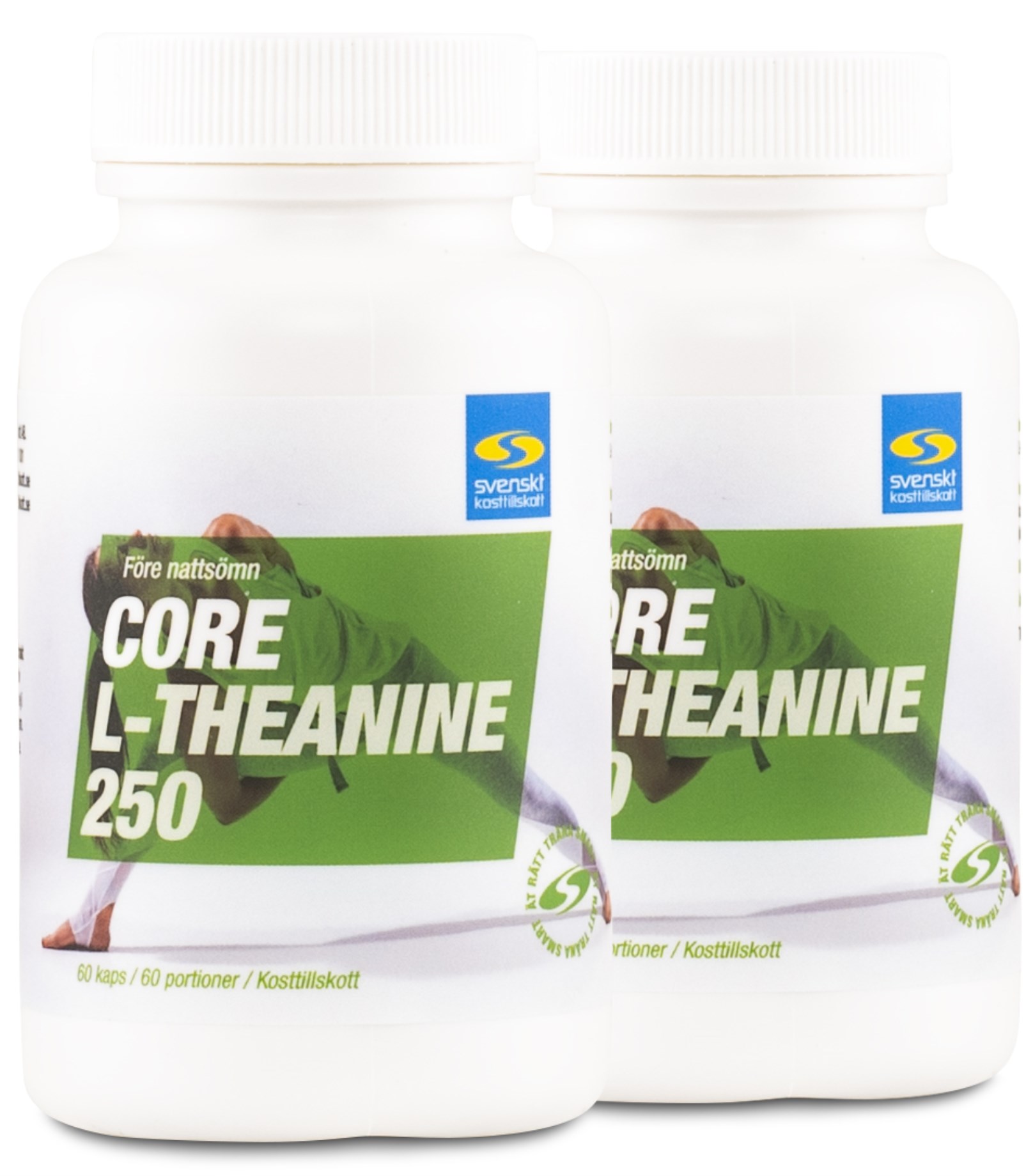 Core L-teaniini 250 on lisäravinne, joka sisältää 250 mg aminohappoa L-teaniinia tiivistetyssä muodossa. Kapseleiden nauttimista suositellaan ennen nukkumaanmenoa edistämään rentoutumista ja palautumista unen aikana. L-teaniini on aminohappo, jota esiintyy luonnollisesti vihreässä teessä ja joka on osoittanut mielenkiintoisia tuloksia useissa tutkimuksissa (1,2).
