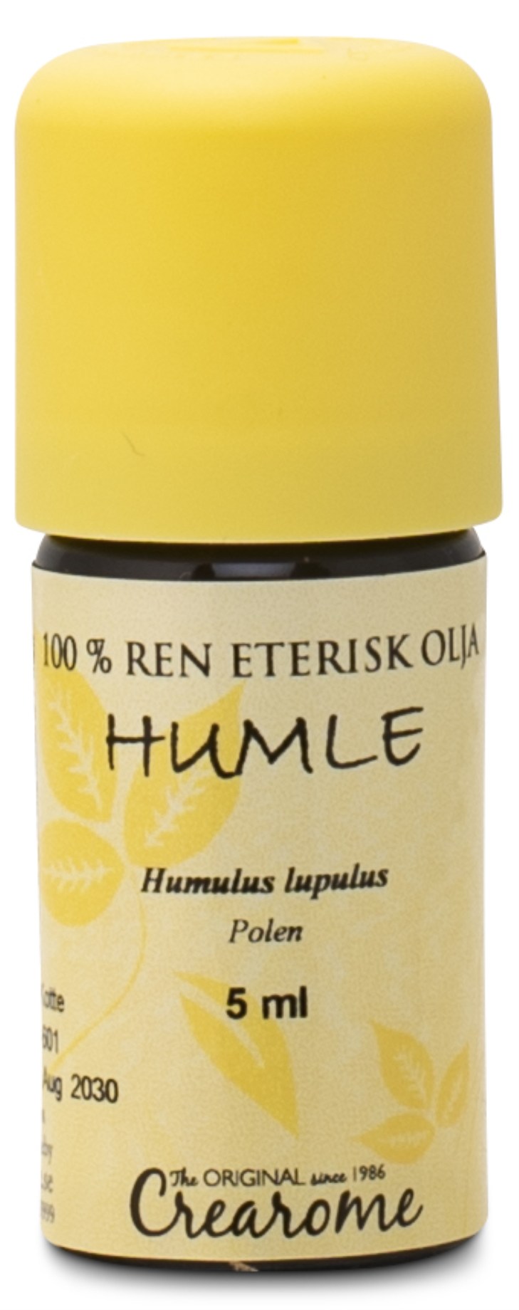 Crearome Eteerinen Humala Öljy on ihana humalan (Humulus lupulus) eteerinen öljy. Humalalla on ainutlaatuinen ja rauhoittava tuoksu, joka on miellyttävä käyttää iltaisin aromilampussa hyvän yön unen saavuttamiseksi. Humalaa on käytetty jo antiikin Egyptissä erilaisissa terveyttä edistävissä kotihoitokeinoissa.