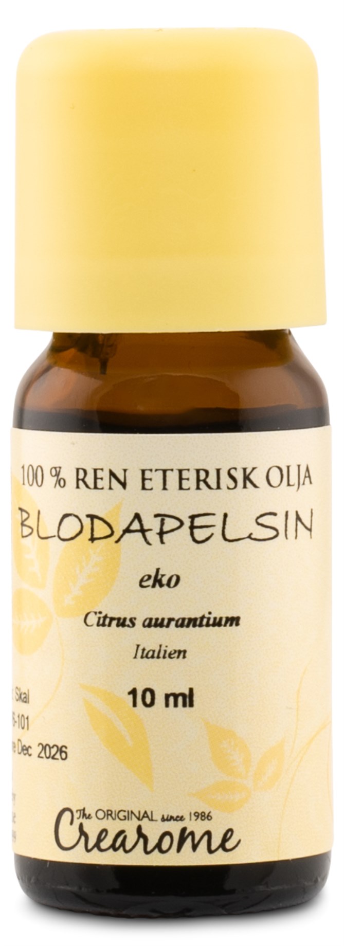 Crearome Eteerinen Veriappelsiini Öljy on raikas veriappelsiinin eteerinen öljy. Tyypillinen appelsiinituoksu, joka on makea, lämmin ja raikas, ja tuo mieleen auringon, valon ja lämmön. Täydellinen aromilamppuun, kun haluat kohottavan ja iloa tuovan tuoksun. Appelsiiniöljyä voidaan käyttää myös ihonhoidossa, kuten iho-, hieronta- ja kylpyöljynä. Appelsiiniöljy uutetaan appelsiininkuorista prosessissa, johon kuuluu raastaminen ja puristaminen samalla kun saadaan appelsiinimehua. Koska appelsiiniöljy on herkkä hapettumiselle, se tulisi käyttää loppuun 1-2 vuoden kuluessa, ja avattu pakkaus tulisi säilyttää jääkaapissa.