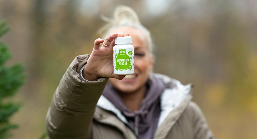 Päivittäinen saanti tulisi olla noin 7,5 mcg, mutta useimpien meistä on vaikea saavuttaa tämä määrä. Jos saamme liian vähän D-vitamiinia, se voi vaikuttaa kalsiumtasapainoon ja johtaa siihen, että saamme liian vähän kalsiumia, mikä vaikuttaa luustomme rakentumiseen. D-vitamiinilisiä on saatavilla monina eri muotoina, kuten monivitamiineissa. Lisäksi on olemassa monia eri vahvuisia lisäravinteita, kaikkea välillä 2000 IE ja 5000 IE. Vegaanista D-vitamiinia saadaan sienistä, joissa on D2-vitamiinia, tai jäkälästä, joka tuottaa vegaanisen D3-vitamiinin. D-vitamiinia on saatavilla nestemäisessä muodossa, purutabletteina ja kapseleina. Valitse se, joka sopii sinulle parhaiten! D-vitamiinilisiä voi syödä ympäri vuoden, mutta Pohjoismaissa asuvilla on suurin tarve syyskuusta huhtikuuhun.