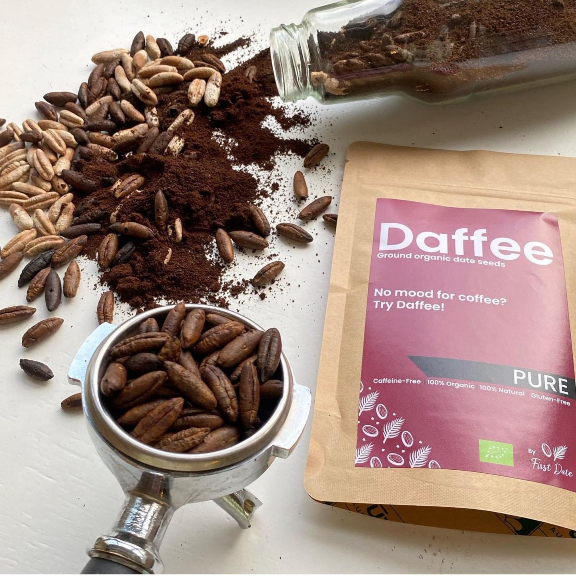 Daffee Kaffe on innovatiivinen amsterdamilainen yritys, joka on perustettu vuonna 2019. Se tarjoaa ainutlaatuisen ja terveellisen kahvin kaltaisen juoman, joka on valmistettu luomulaatuisista taatelinsiemenistä. Paahdettujen ja jauhettujen taatelinsiementen avulla luomme kofeiinittoman vaihtoehdon perinteiselle kahville – täydellinen sinulle, joka haluat ylläpitää tasaista energiatasoa ilman kofeiinin vaikutuksia.