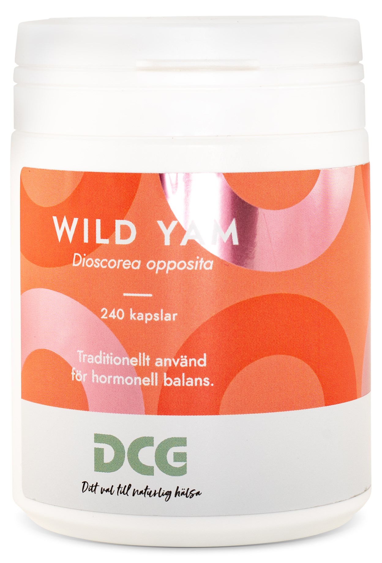 DCG Wild Yam on kasvipohjaisia kapseleita, jotka sisältävät jamssijuurijauhetta, eli wild yam -nimelläkin tunnettua kasvia. Wild yam on luonnostaan rikas aktiivisista aineista, joita ovat: fytosterolit, antioksidantit ja fytoestrogeeni diosgeniini. Diosgeniinia on perinteisesti käytetty hormonaalisiin ongelmiin, kuten PMS:ään ja vaihdevuosiin liittyviin vaivoihin. Tavallisia hormonaalisia vaivoja ovat muun muassa kuumat aallot, emättimen kuivuus, mielialanvaihtelut ja univaikeudet. DCG Wild Yam on standardoitu sisältämään 16 % diosgeniiniä, ja suositeltu annos on 2 kapselia aamulla ja illalla.