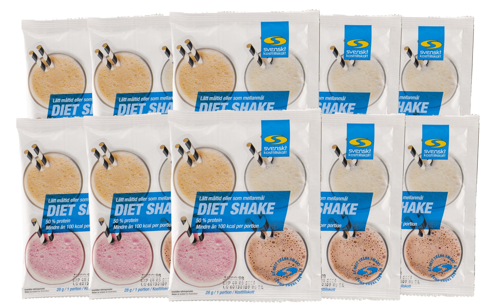 Tutustu suosikkimakuusi Diet Shake -annospussilla! Kätevät Diet Shake -annospakkaukset, joiden avulla voit helposti kokeilla eri makuja ja löytää oman suosikkisi. Diet Shake on maukas vähäkalorinen juoma, joka voi auttaa sinua ylläpitämään ruokavaliotasi korvaamalla yhden päivän pääaterioista. Korkean kuitu- ja proteiinipitoisuutensa ansiosta Diet Shake tarjoaa pitkäkestoisen kylläisyyden tunteen alle 100 kcal per annos. Lisäksi annospakkaukset on helppo ottaa mukaan nopealle lounaalle liikkeellä ollessasi, töihin tai välipalaksi.