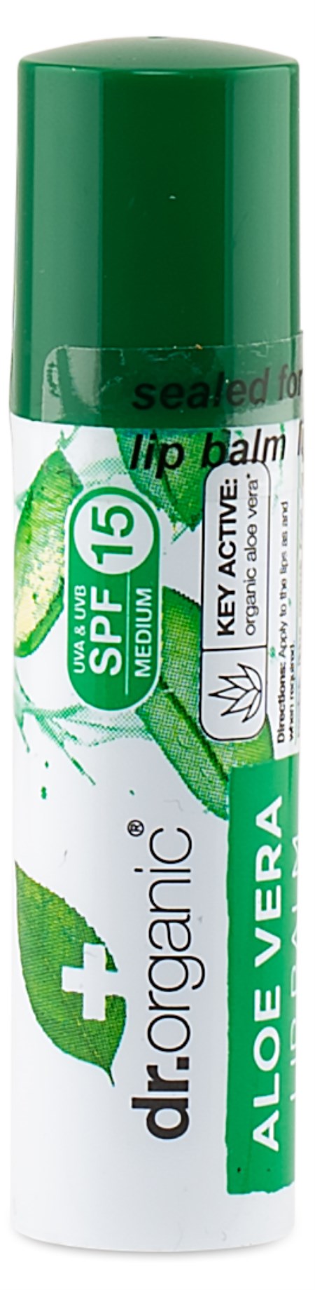 Dr Organicsin Aloe Vera Huulivoide on huulivoide, jonka pohjana on luomu Aloe veraa ja joka tehokkaasti kosteuttaa kuivia huulia. Huulivoide sisältää aurinkosuojakerroin SPF 15, joka suojaa herkkiä huulia UVA- ja UVB-säteiltä.