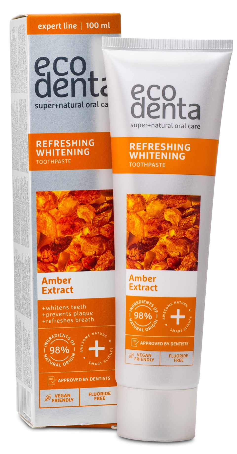 Ecodenta Expert Line Whitening Toothpaste on vegaaninen hammastahna, joka sisältää erityisen ainesosan meripihkan. Innovatiivisen koostumuksensa ansiosta se ehkäisee värjäytymiä ja antaa sinulle raikkaamman hymyn. Lisätty ksylitoli edistää normaalia syljentuotantoa, mikä hidastaa plakin muodostumista. Käytä päivittäin parhaan vaikutuksen saavuttamiseksi. Hammastahna on fluoriton.
