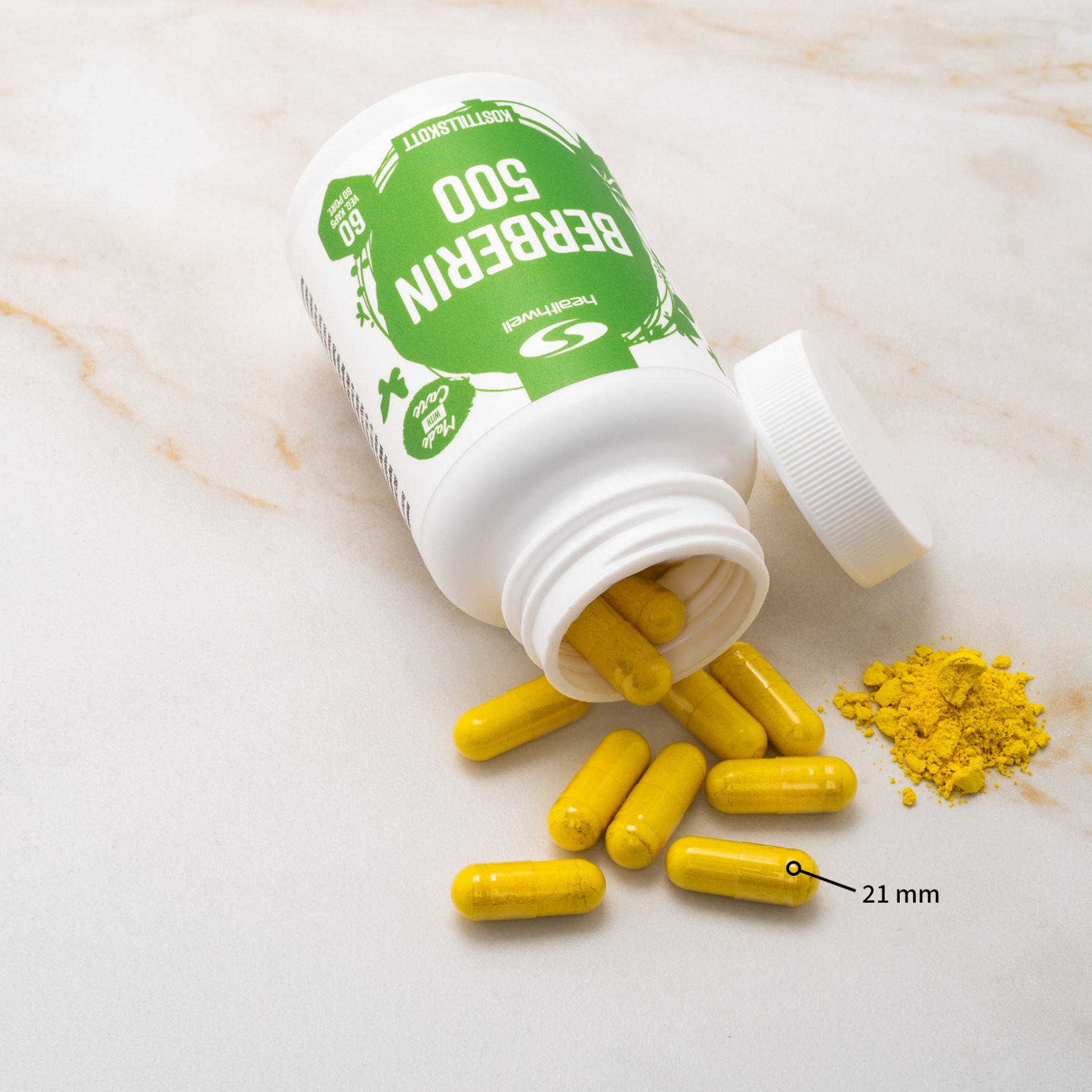 Berberiini, tunnetaan myös nimellä "berberine", joka on alkaloidi, jota löytyy berberiskasvien juurista. Alkaloidit ovat peräisin sienistä tai kasveista ja niillä voi olla merkittäviä fysiologisia tai psykoaktiivisia vaikutuksia elimistöön. Healthwell Berberiini 500 sisältää luonnollista uutetta Berberis aristratesta, hydrokloridimuodossa. Tämä tarkoittaa, että berberiini on suolana, joka on sitoutunut kloridi-ioneihin. Tavoitteena on parantaa sen tasapainoista imeytymistä elimistössä. Berberin 500 on siis helposti saatavilla oleva berberiinin muoto, joka liukenee veteen ja siksi voi imeytyä helpommin elimistöön.