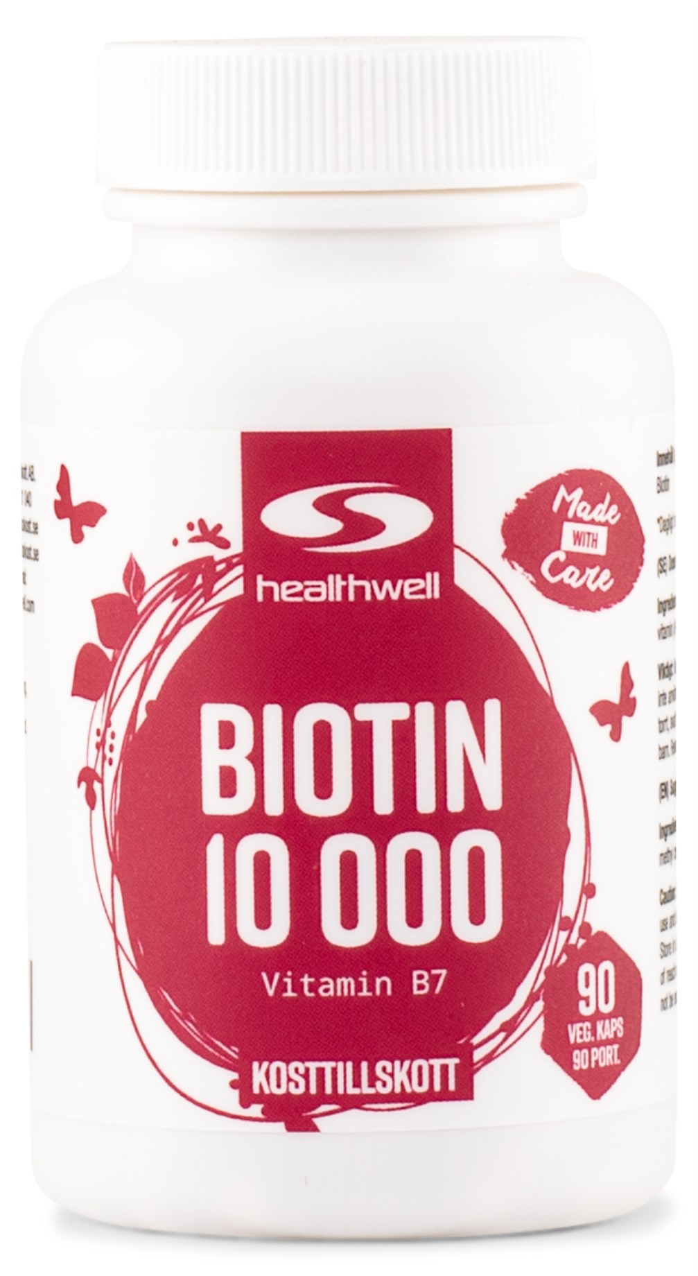 Healthwell Biotiini 10 000 sisältää peräti kymmenentuhatta mikrogrammaa (µg) biotiinia, eli B7-vitamiinia. Kyseessä onkin vahvin ja tehokkain biotiinilisämme tähän mennessä; valikoimastamme löytyy myös Biotiini 5000, Biotiini 1000 ja Biotiini 500. Healthwell Biotiini 10 000 on loistava lisäravinne etenkin, kun haluat huolehtia ihostasi, hiuksistasi ja kynsistäsi, mutta biotiinilisä myös tukee normaalia energia-aineenvaihduntaa ja keskushermoston toimintaa. Biotiinia käytetään kuitenkin yleisimmin kauneuslisäravinteissa ja sen hiuksia vahvistavien ominaisuuksiensa vuoksi sitä kutsutaan välillä myös H-vitamiiniksi. Tällä suuriannoksisella biotiinilisällä saat paljon biotiinia ilman, että sinun tarvitsee yhdistää useita eri ravintolisiä.