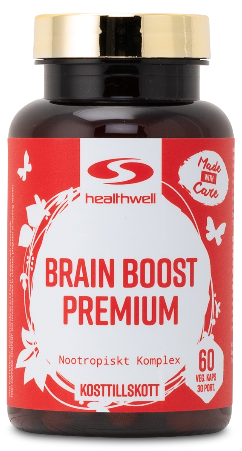 Healthwell Brain Boost Premium on edistynyt ravintolisä sinulle, joka haluat parasta aivojesi henkisen kyvyn tehostamiseksi. Ravintolisä sisältää nootrooppisia yrttejä, kuten ruusujuurta ja Bacopa monnieria, sekä sitikoliinia ja luonnollista kofeiinia. Se sisältää myös lisättyä B6-vitamiinia, joka auttaa vähentämään väsymystä ja parantamaan keskittymiskykyä, sekä jodia, joka edistää normaalia kognitiivista kykyä. Healthwell Brain Boost Premium voidaan hyvin yhdistää saman sarjan Healthwell Brain Premiumin kanssa parhaan vaikutuksen saavuttamiseksi.