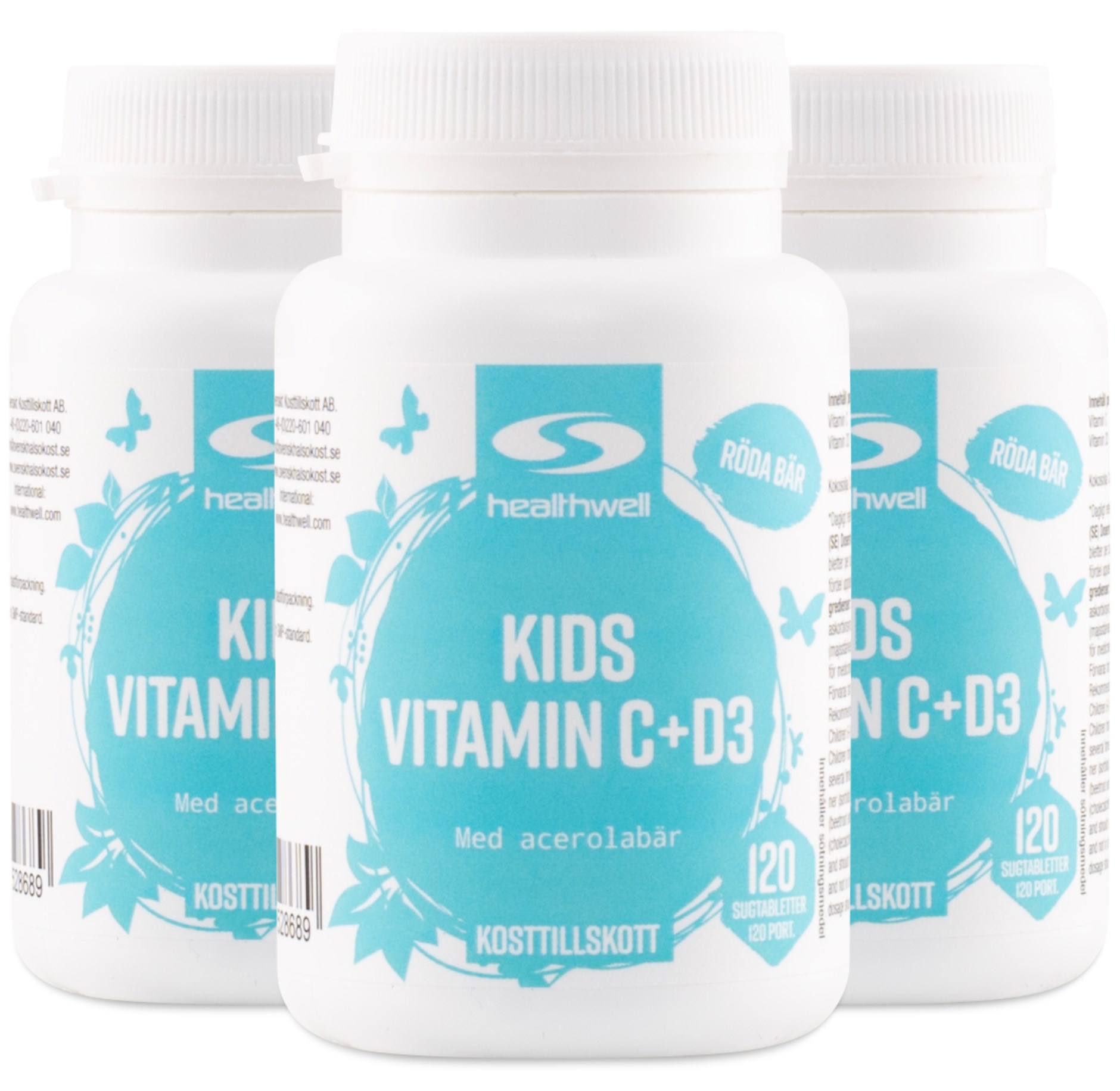 Healthwell C + D3 Lasten Vitamiinit ovat pienikokoisia ja helposti pureskeltavia imeskelytabletteja, jotka sisältävät C- ja D-vitamiinia lapsen tarpeisiin sopivina annoksina. Tabletit ovat sokerittomia ja niissä on hyvä marjan maku, ne eivät kuitenkaan maistu makeisilta. C-ja D-vitamiinilla on monia tärkeitä tehtäviä kehossa ja ne edistävät muun muassa normaalin immuunijärjestelmän ylläpitämistä. D-vitamiini tukee myös luuston normaalia kehitystä ja toimintaa. C + D3 Lasten Vitamiinissa sen vitamiinit ovat lempeitä lapsen vatsalle samalla, kun ne imeytyvät hyvin ja toimivat tehokkaasti kehossa. Tuotteen C-vitamiini tulee myös suurilta osin 100 % luonnollisesta acerolajauheesta!