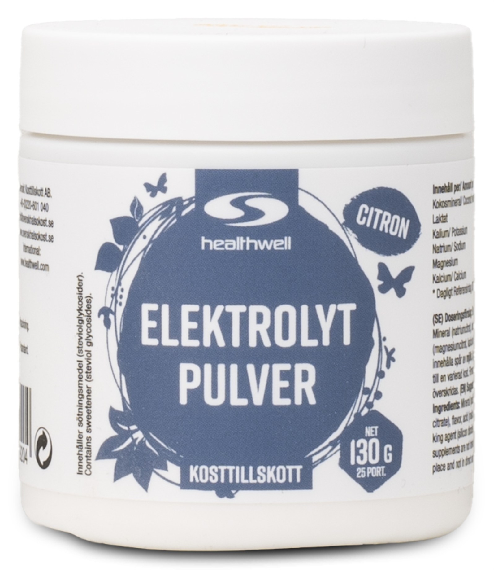 Healthwell Elektrolyyttijauhe on erinomainen vaihtoehto nestetasapainon palautukseen sinulle, joka treenaat intensiivisesti ja pitkäkestoisesti, tai kuumana kesäpäivänä. Elektrolyyttijauhe sisältää mineraaleja, jotka kuuluvat elektrolyytteihin ja kuluvat nopeammin aktiivisuuden tai voimakkaan hikoilun vuoksi. Runsas veden juonti sekä ylimääräisen suolan ja elektrolyyttien saanti on kätevä tapa palauttaa neste- ja suolatasapaino nopeasti. Healthwell Elektrolyyttijauheella on myös herkullinen sitruunan maku!