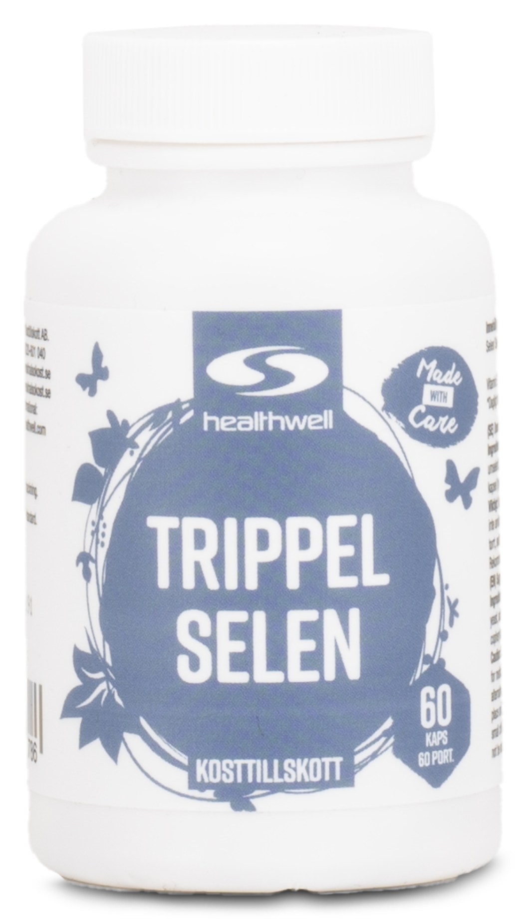 Kolmoisseleeni Healthwelliltä on kehitetty sinulle, joka et tyydy vähempään. Tästä ravintolisästä saat seleeniä kolmesta merkittävästä lähteestä: seleenihiivasta, seleenimetioniinista ja natriumseleniitistä, yhteensä 200 µg aktiivista seleeniä per kapseli. Kapselit on vahvistettu luonnollisella E-vitamiinilla, joka toimii seleenin kanssa yhdessä edistääkseen sen vaikutuksia. Suositeltu annostus on 1 kapseli päivässä aterian yhteydessä.