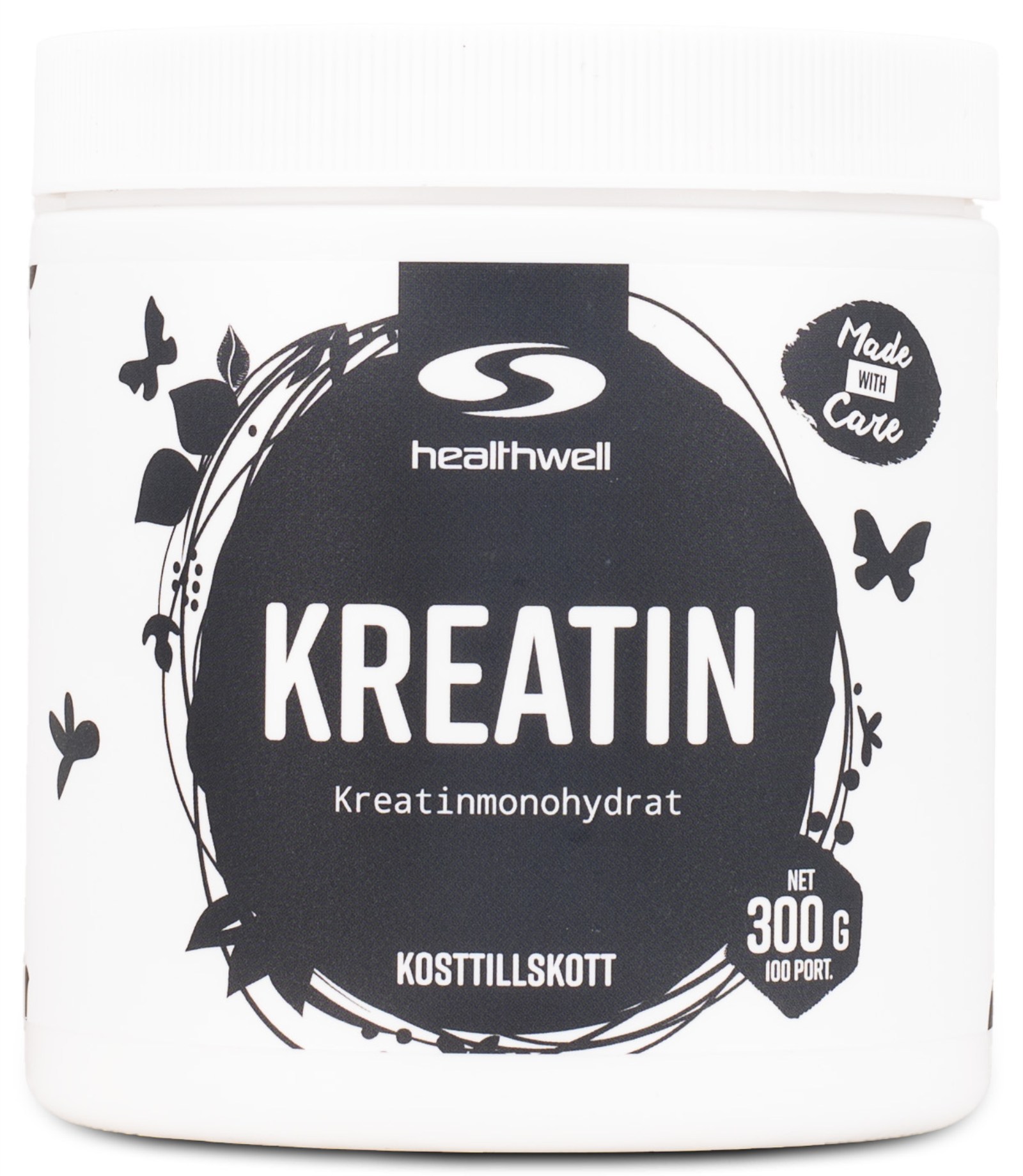 Kreatiini on hyvin tutkittu aine, jota on luonnostaan kehossa ja ruoassa. Kreatiinilla on osoitettu voivan parantaa fyysistä suorituskykyä lyhytaikaisessa ja korkeaintensiivisessä harjoittelussa (1). Tämä vaikutus voi näkyä harjoittelun alussa tai intensiteetin kohotessa sekä raskaissa voimanostoissa että kestävyystreeneissä. Suotuisa vaikutus saavutetaan nauttimalla vähintään kolme grammaa kreatiinia päivässä, ja Healthwell Kreatiinin annostuksella saat 3-6 grammaa per annos.