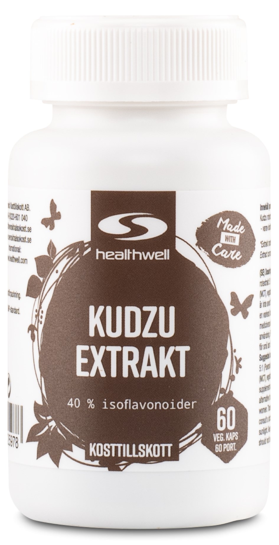 Healthwell Kudzu Uute sisältää uutetta kudzun juuresta (Pueraria lobata). Yksi kapseli sisältää 500 mg kudzu-uutetta, mikä vastaa 2,5 grammaa kuivattua juurta ja sisältää vähintään 40 % isoflavonoideja. Kudzua on pitkään käytetty kiinalaisen perinteen mukaisesti terveyttä edistävinä aineena. Suositeltu annostus on 1 kapseli 1-2 kertaa päivässä.