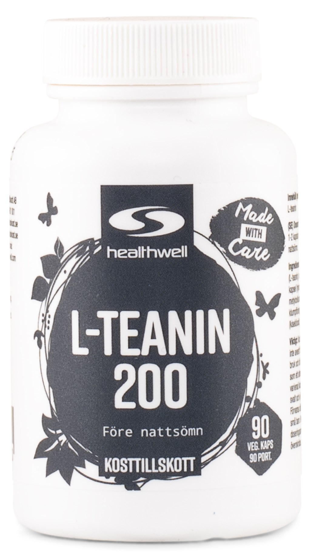 Healthwell L-teaniini 200 on ravintolisä, joka sisältää aminohappo teaniinia tiivistetyssä muodossa. Teaniinia löytyy luonnostaan teepensaan lehdistä ja etenkin vihreästä teestä. Aminohapon uskotaan edistävän serotoniinin ja dopamiinin vapautumista aivoista. Kyseiset välittäjäaineet vaikuttavat mielialaan ja palkitsemisjärjestelmään ja tekevät olosta iloisen ja rauhallisen. Niinpä ei olekaan yllättävää, että moni tykkää juoda kupin vihreää teetä ennen nukkumaanmenoa. Healthwell L-teaniini 200 sisältää 200 mg teaniinia annosta kohti, ja suositeltu annos on yksi kapseli ennen nukkumaanmenoa.