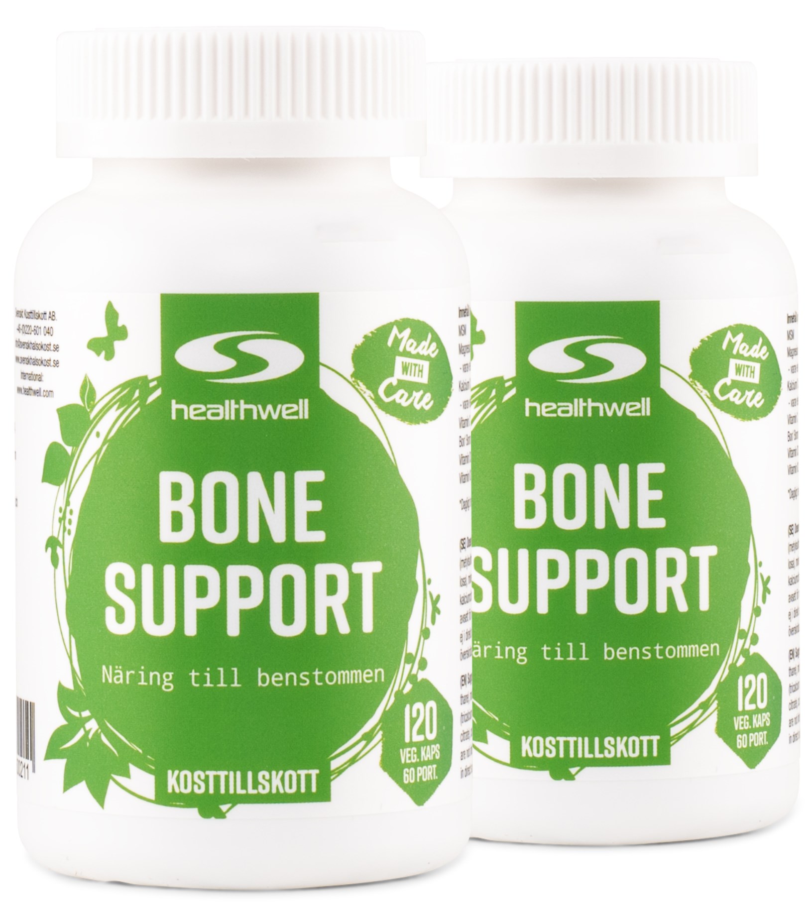 Healthwell Bone Support sisältää kompleksin mineraaleja ja vitamiineja, jotka ovat tärkeitä luuston normaalille toiminnalle. Ne auttavat sinua säilyttämään nykyisen toimintakykysi ja elämään aktiivista elämää. Bone Supportissa löydät muun muassa kalsiumia, MSM:ää, magnesiumia ja booria. Jotta kalsiumin imeytyminen olisi optimaalista, C- ja D-vitamiinit on lisätty ja K-vitamiini auttaa kalsiumin säätelyssä.
