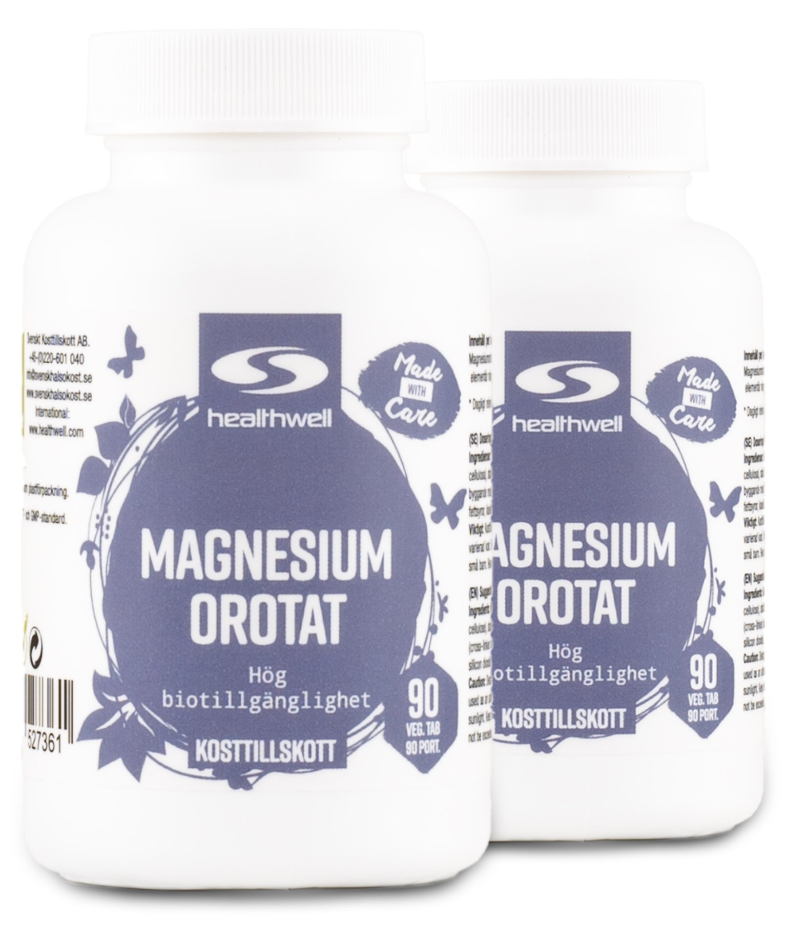 Healthwell Magnesiummorotaatti 1000 on kasviperäistä tabletissa olevaa magnesiumia, jossa on peräti 1 000 mg magnesium L-orotatea per tabletti. Magnesium L-orotate on magnesiumin tyyppi orotiinihapolla. Magnesiumia tarvitaan kehossa muun muassa kalsiumin aineenvaihduntaan sekä normaaliin hermo- ja lihasfunktioon.