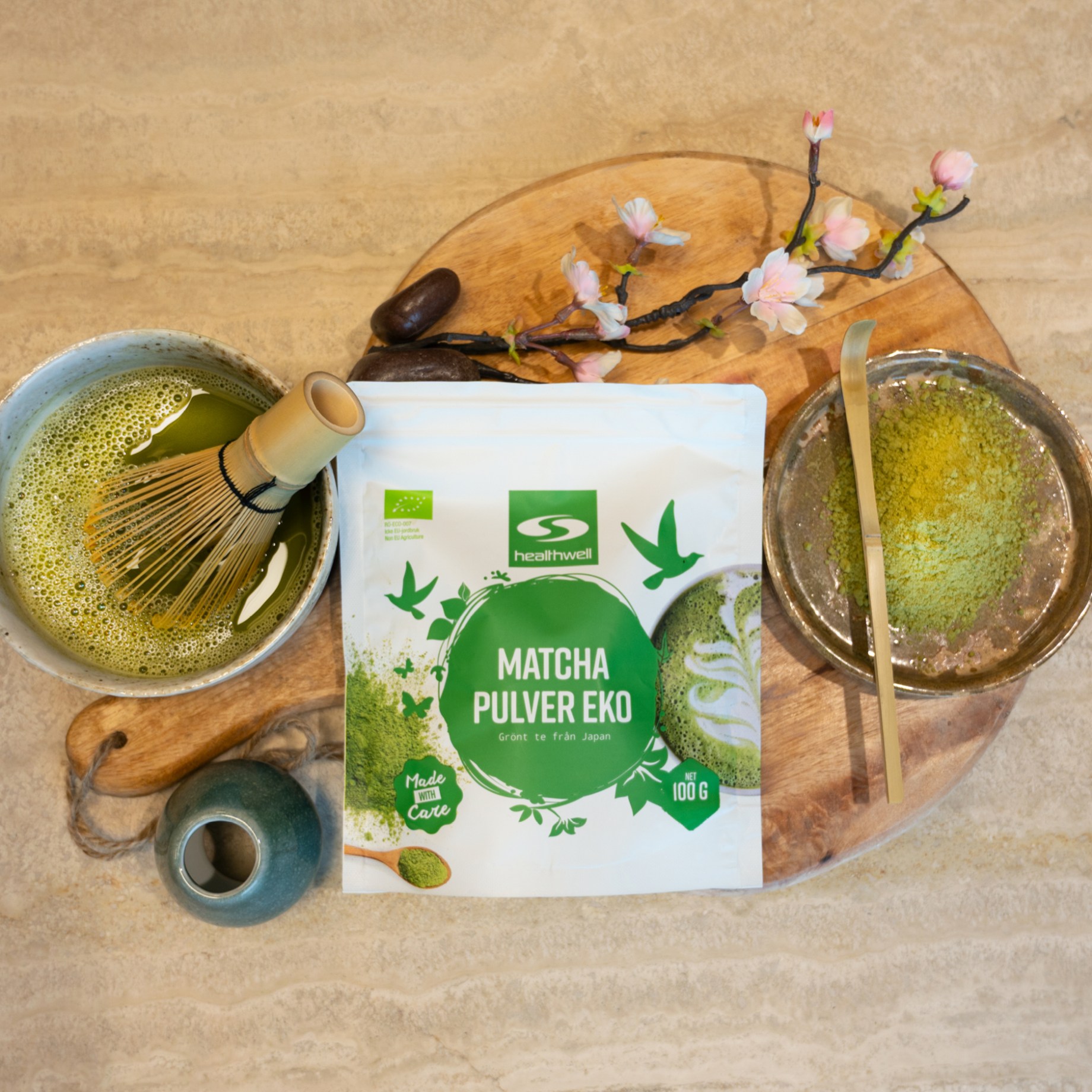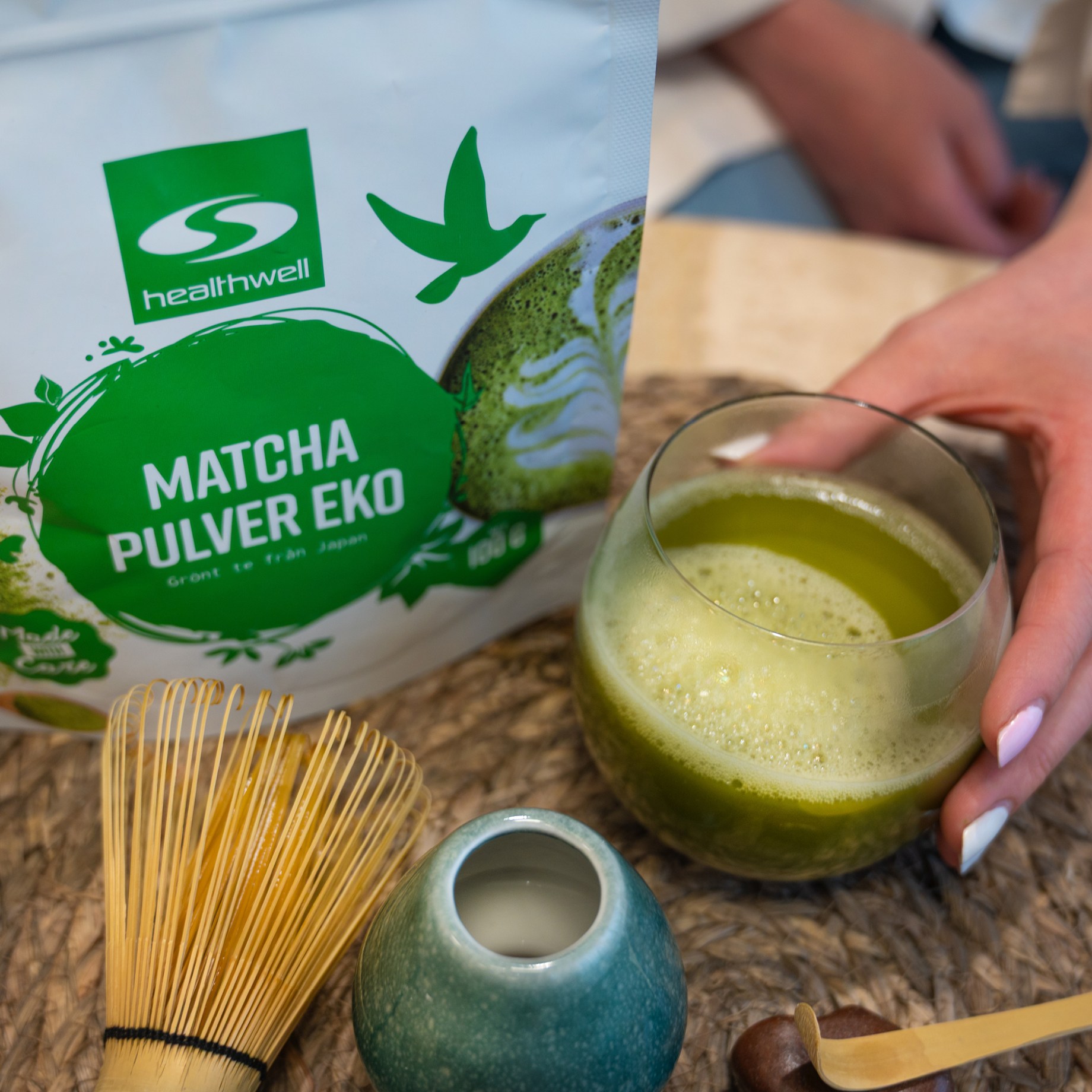 Aloita päiväsi kupillisella matchaa, kun tarvitset lisäenergiaa! Healthwell Matchajauhe Luomu sisältää 100 % puhdasta ja ekologista matchajauhetta Japanista. Matcha on vihreää teetä, joka on erittäin suosittua ja tunnettu virkistävistä ominaisuuksistaan. Koska teelehtiä ei suodateta pois, vaan ne jauhetaan pulveriksi, saat vitamiineja, kivennäisaineita, runsaasti klorofylliä vihreistä lehdistä, antioksidantteja, kofeiinia ja teaniinia – kaikki ihanassa ja maukkaassa sekoituksessa!