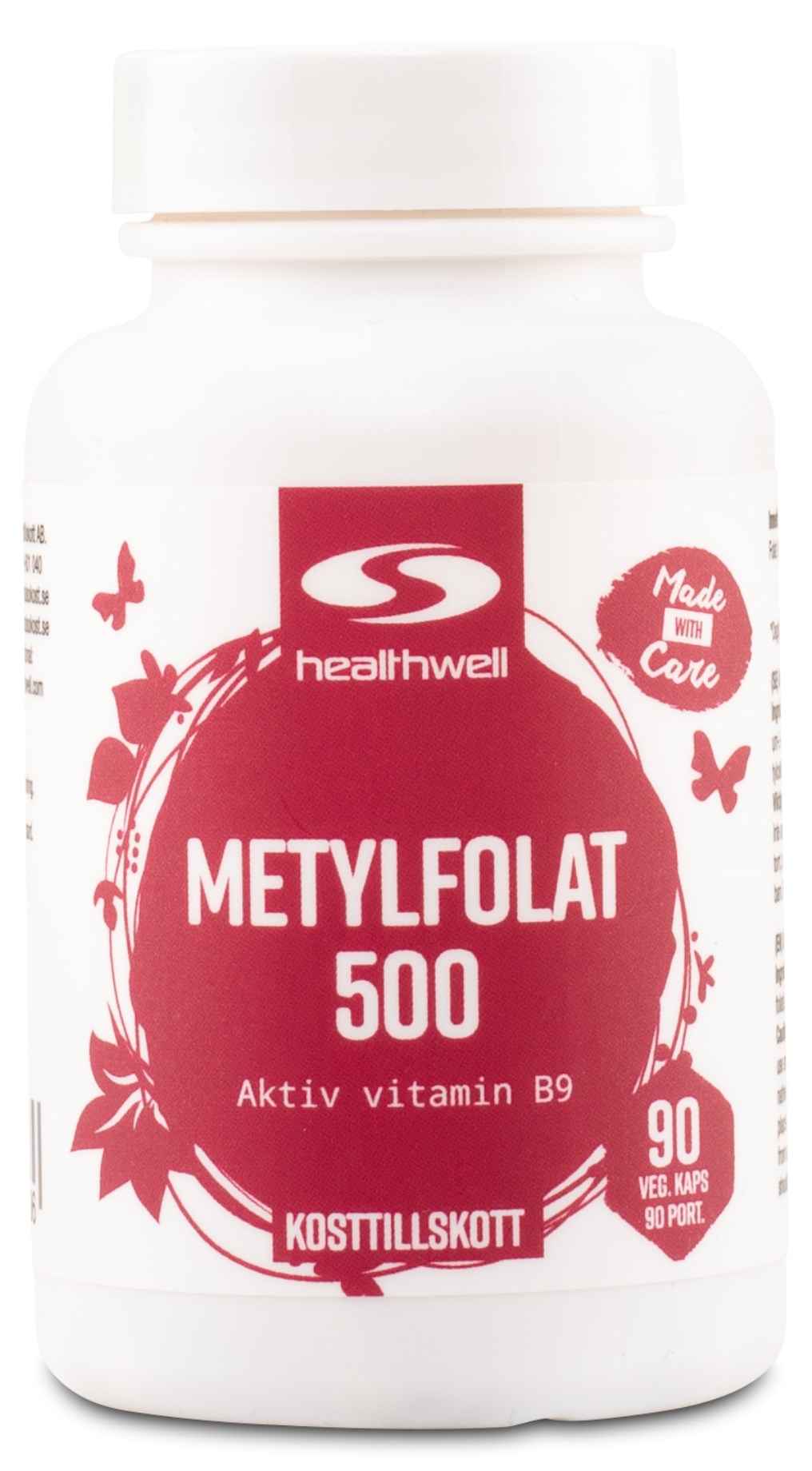 Healthwell Metyylifolaatti 500 on metyylifolaattia sisältävä lisäravinne, vitamiini joka tunnetaan myös nimillä foolihappo tai folaatti, ja joka on B-vitamiinin muoto. Metyylifolaatti 500 sisältää kapselia kohden 500 µg kalsium-L-metyylifolaattia, joka on foolihapon luonnollinen ja aktiivinen muoto. Aktiivinen muoto tarkoittaa sitä, että elimistön ei tarvitse muuntaa (metyloidä) sitä ennen hyödyntämistä.