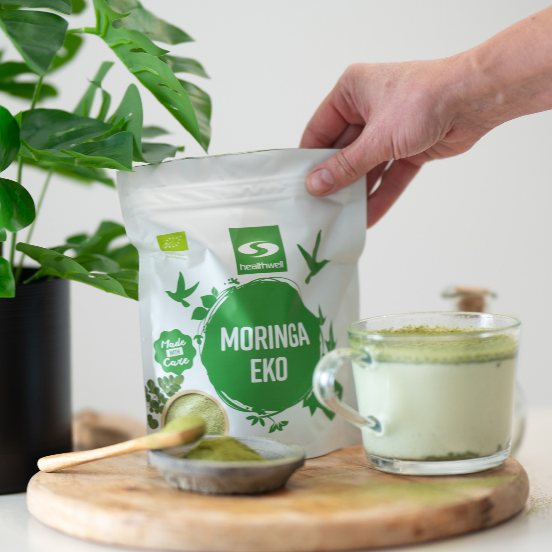 Anna kehollesi ravitseva lisäys Healthwell Moringa EKO -jauheella, joka on peräisin moringakasvista (Moringa oleifera), usein kutsuttu "ihmepuu" sen ravinteikkaan sisällön vuoksi. Moringa on rikas aminohapoista, antioksidanteista ja useista tärkeistä mineraaleista ja vitamiineista. Hienoksi jauhettu jauhe on helppo sekoittaa lasilliseen vettä, kupilliseen teetä tai terveelliseen smoothieen. Sen vaalean ja keskivihreän värin ja ainutlaatuisen, kevyesti mausteisen maun ansiosta se muistuttaa piparjuurta ja on ravitseva lisä päivittäiseen ruokavalioosi.