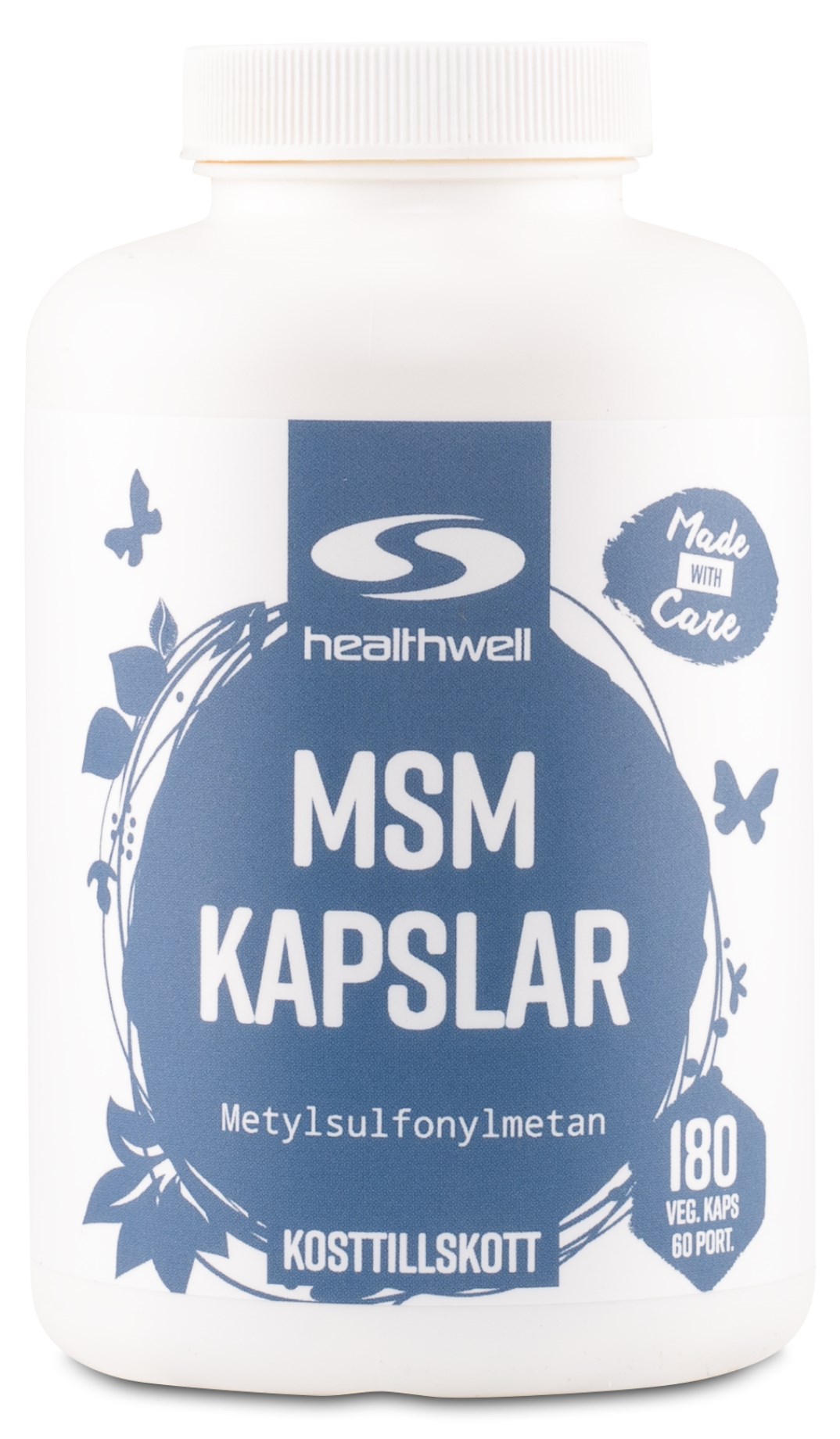 Healthwell MSM (metyylisulfonyylimetaani) on vahva ravintolisä, joka sisältää puhdasta MSM:ää kätevässä kapselimuodossa. MSM sisältää runsaasti rikkiä, jota on luonnostaan kollageenissa, proteiinissa, joka antaa rakennetta nivelille, nivelsiteille, rustoille ja iholle. MSM myös edistää useiden B-vitamiinien imeytymistä sekä tiettyjen entsyymien, välittäjäaineiden ja aminohappojen tuotantoa. Käytä päivittäisenä lisänä osana aktiivista elämäntapaa.