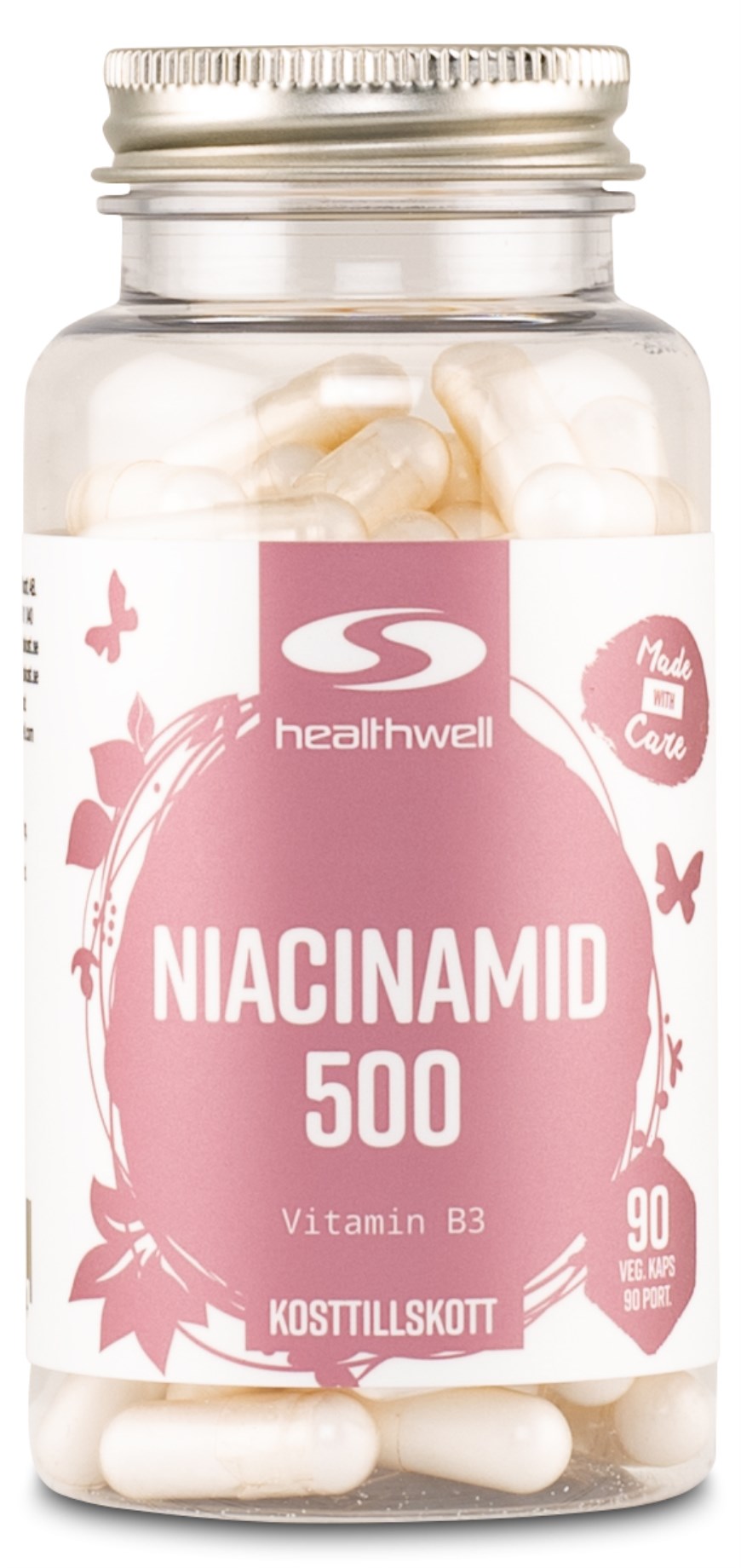 Helli hieman hiuksiasi, ihoasi ja kynsiäsi. Healthwellin Niasiiniamidi 500 on täynnä niasiiniamidia, joka on muoto B3-vitamiinista, eli niacinista. Niasiiniamidia käytetään usein kauneustuotteissa sillä se on ravintoaine, jolla on useita positiivisia vaikutuksia, kuten esimerkiksi se, että niasiiniamidi edistää normaalia hyvinvoivaa ihoa.