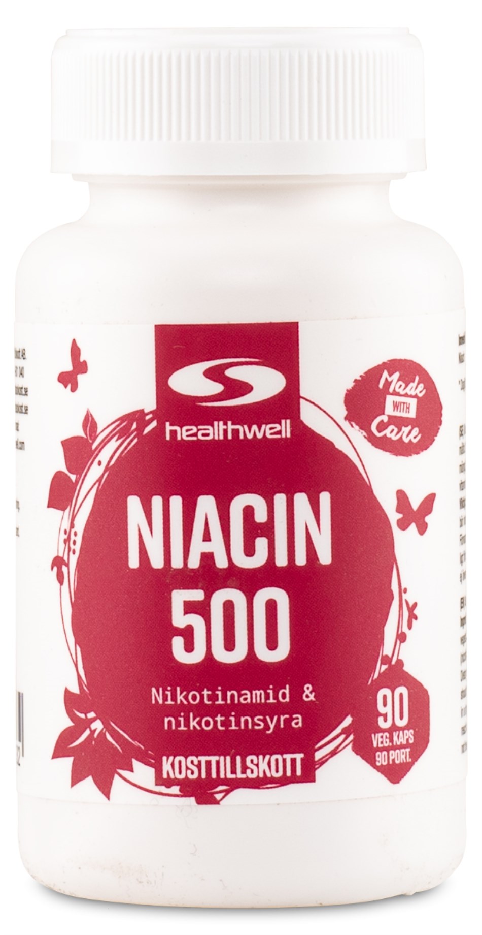 Healthwell Niasiini 500 on ravintolisä, joka sisältää peräti 500 mg niasiinia (B3-vitamiinia) annosta kohden. Tässä lisäravinteessa niasiini esiintyy nikotiinihapon ja nikotiiniamidin muodossa, jotka voidaan ottaa suurempina määrinä ilman niin kutsuttuja flush-reaktioita. Flush-reaktio ilmenee kasvojen ja rinnan polttavana, kuumana tai pistelevänä tunteena sekä punottavana tai liekehtivältä näyttävänä ihona. Tämä reaktio on kuitenkin yleensä vaaraton ja ohimenevä. Niasiini 500:lla sinun ei tarvitse huolehtia tästä vaikutuksesta.