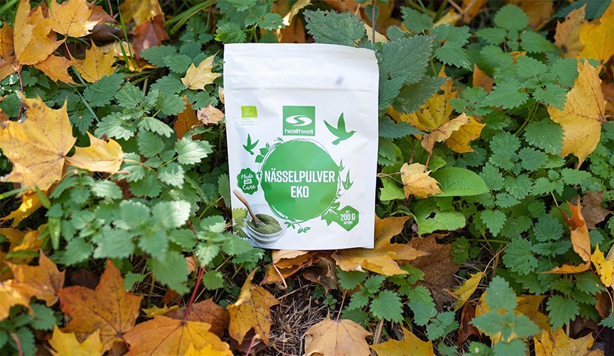 Healthwell Nokkosjauhetta voidaan käyttää vitamiinilisänä päivittäisessä smoothiessa, inkivääri-terveysshotissa, nokkoskeitossa tai miksei keittää kupillisen teetä nokkosjauheesta?