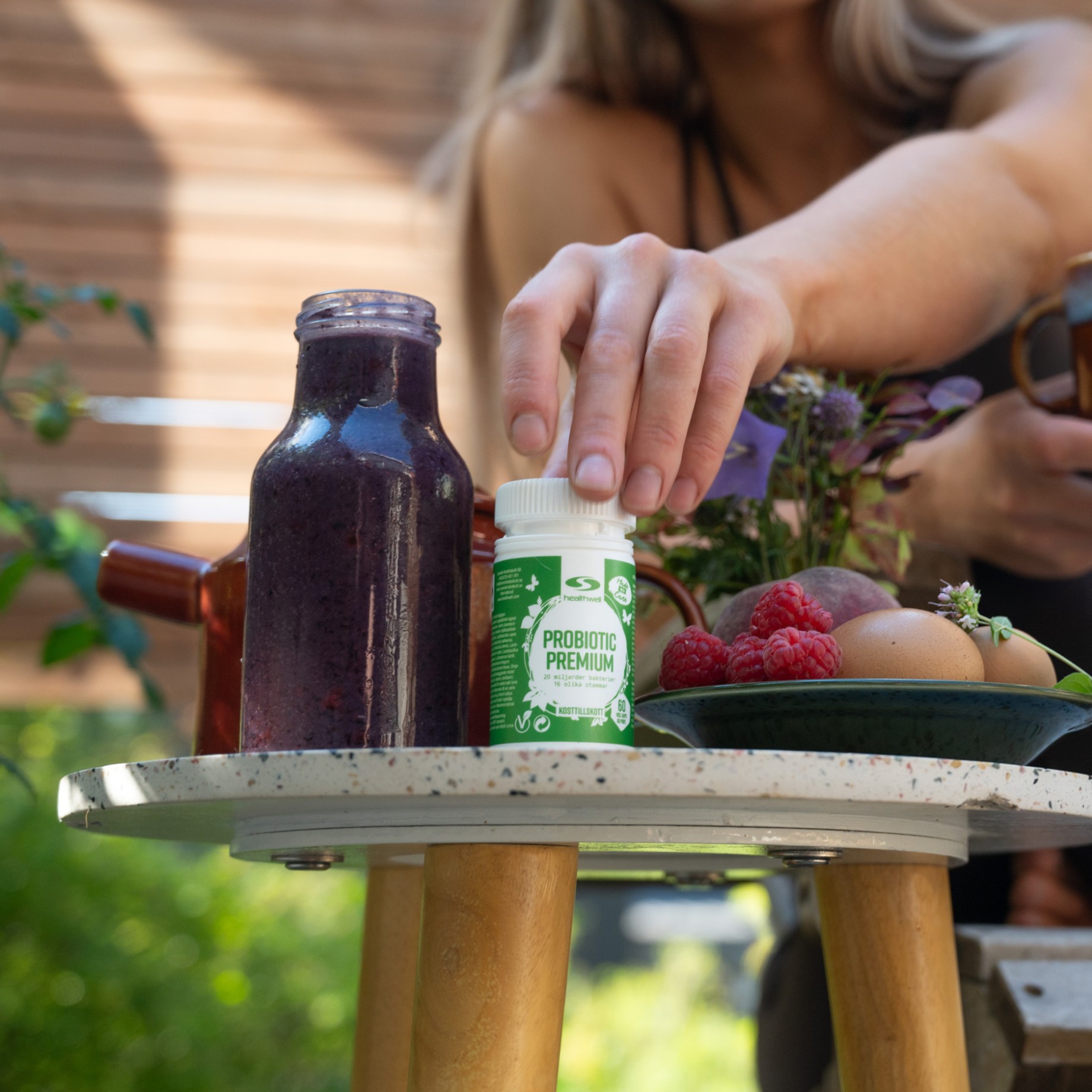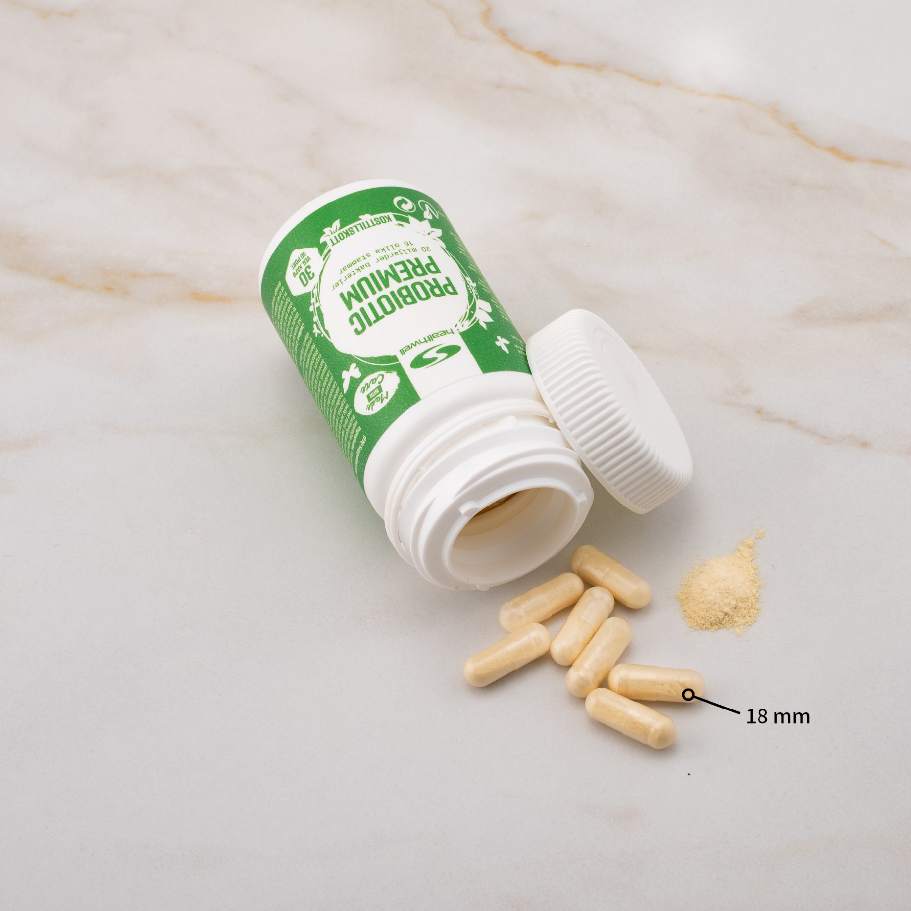 Probiotic Premium on korkeasti annosteltu lisäravinne, joka sisältää vatsaystävällisiä bakteereita.