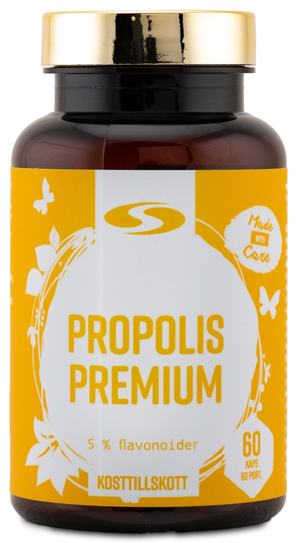 Propolis on uskomattoman mielenkiintoinen ilmiö, jonka luonto ja mehiläiset luovat omatoimisesti. Propolis on supertuote, joka suojaa mehiläispesää ulkoisilta hyökkäyksiltä ja viruksilta. Healthwell Propolis Premium sisältää erityisen korkealaatuista propolisuutetta, jossa on 5 % flavonoideja. Yksi kapseli sisältää 400 mg propolista, mikä vastaa noin 1,2 grammaa tuoretta raaka-ainetta. Käytä ajanjaksoina, kun tarvitset lisäravinteita - yksi kapseli päivässä riittää.