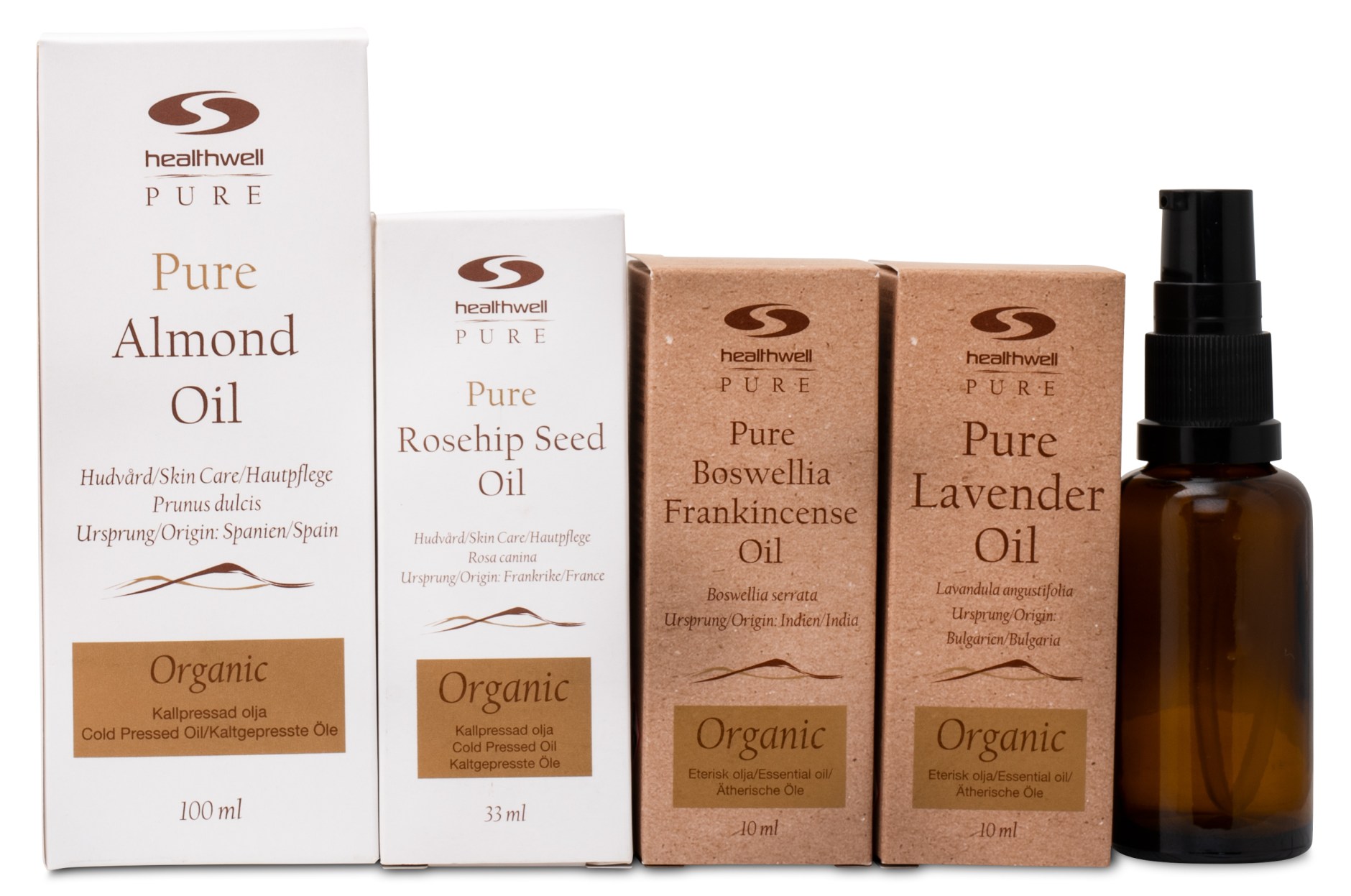 Healthwell PURE -valikoimassa on sekä kasviperäisiä että kylmäpuristettuja öljyjä kaikkiin tarpeisiin. Täältä löydät esimerkiksi PURE Eteerisiä öljyjä, jotka valmistetaan hellävaraisesti höyrytislauksella, jotta kaikki luonnolliset aineet säilyvät. PURE kylmäpuristetut öljyt koostuvat myös tarkkaan valituista kasveista ja hellävaraisesta kylmäpuristusprosessista, jotta kaikki hyödylliset rasvahapot säilyvät. Lue lisää siitä, kuinka valita oikea öljy ihotyypillesi.