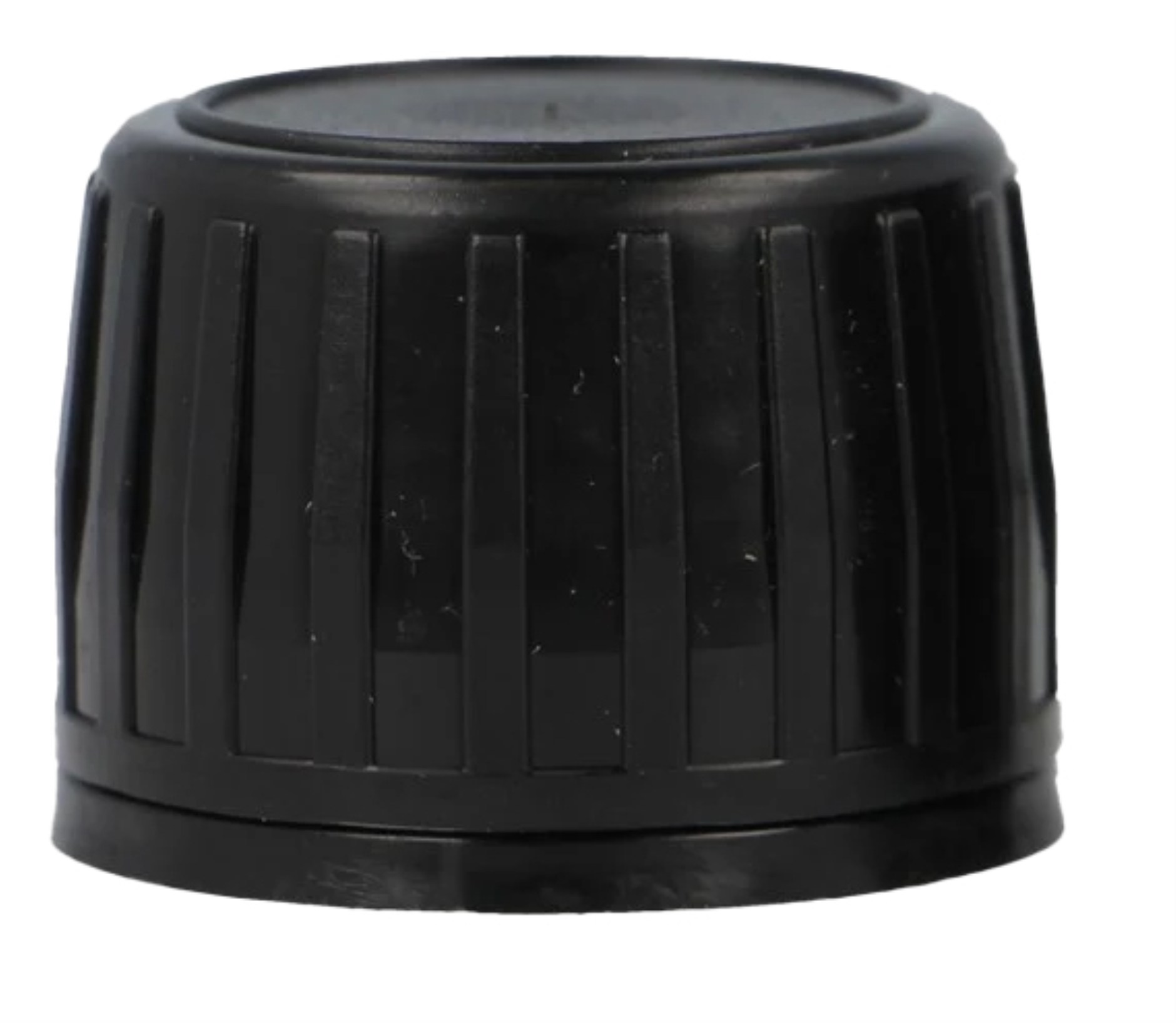 Musta korkki, joka sopii 28 mm kaulalla varustettuihin lasi- ja PET-pulloihin. Korkissa on käytännöllinen irrotettava rengas, joka osoittaa, onko sinetti rikottu vai ei.