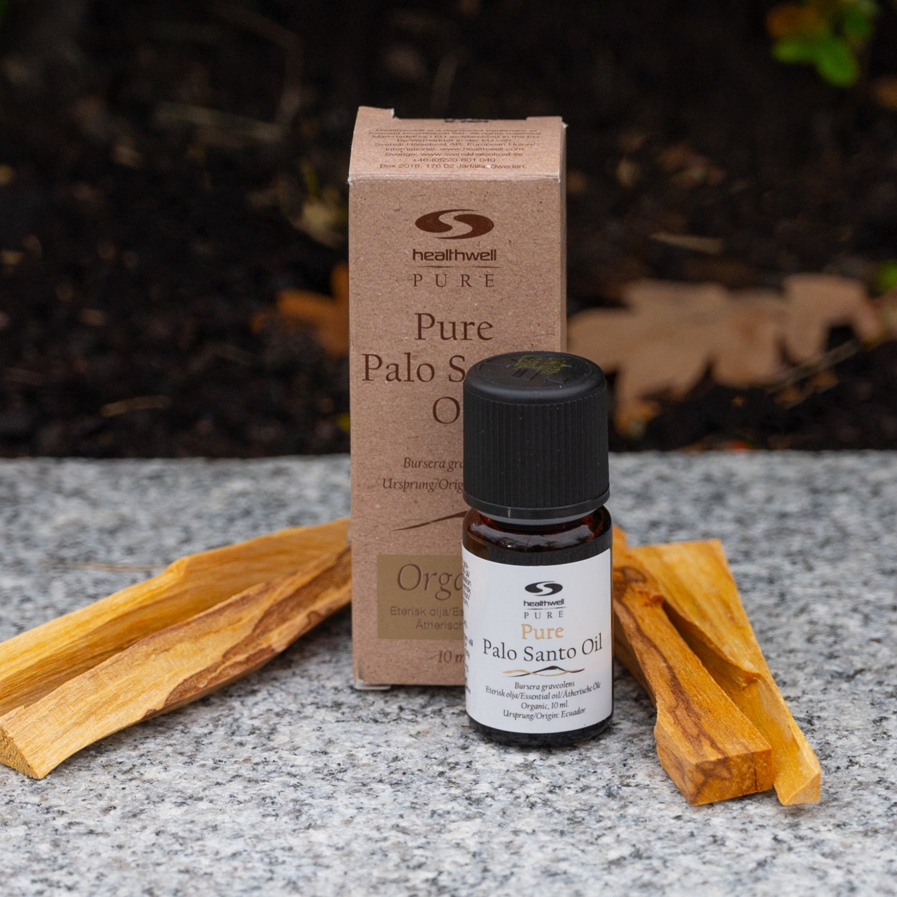 PURE Palo Santo Luomu on 100 % puhdasta eteeristä öljyä, joka on valmistettu puun (Bursera graveolens) tislaamalla. Palo Santo on suosittu miellyttävän tuoksunsa ja voimakkaasti puhdistavan vaikutuksensa ansiosta. Öljyssä on kevyesti makea tuoksu, joka muistuttaa sekoitusta frankincensestä ja appelsiinikukasta. Voit käyttää PURE Palo Santo öljyä sekä ihonhoidossa, aromaterapiassa että meditaatiossa.