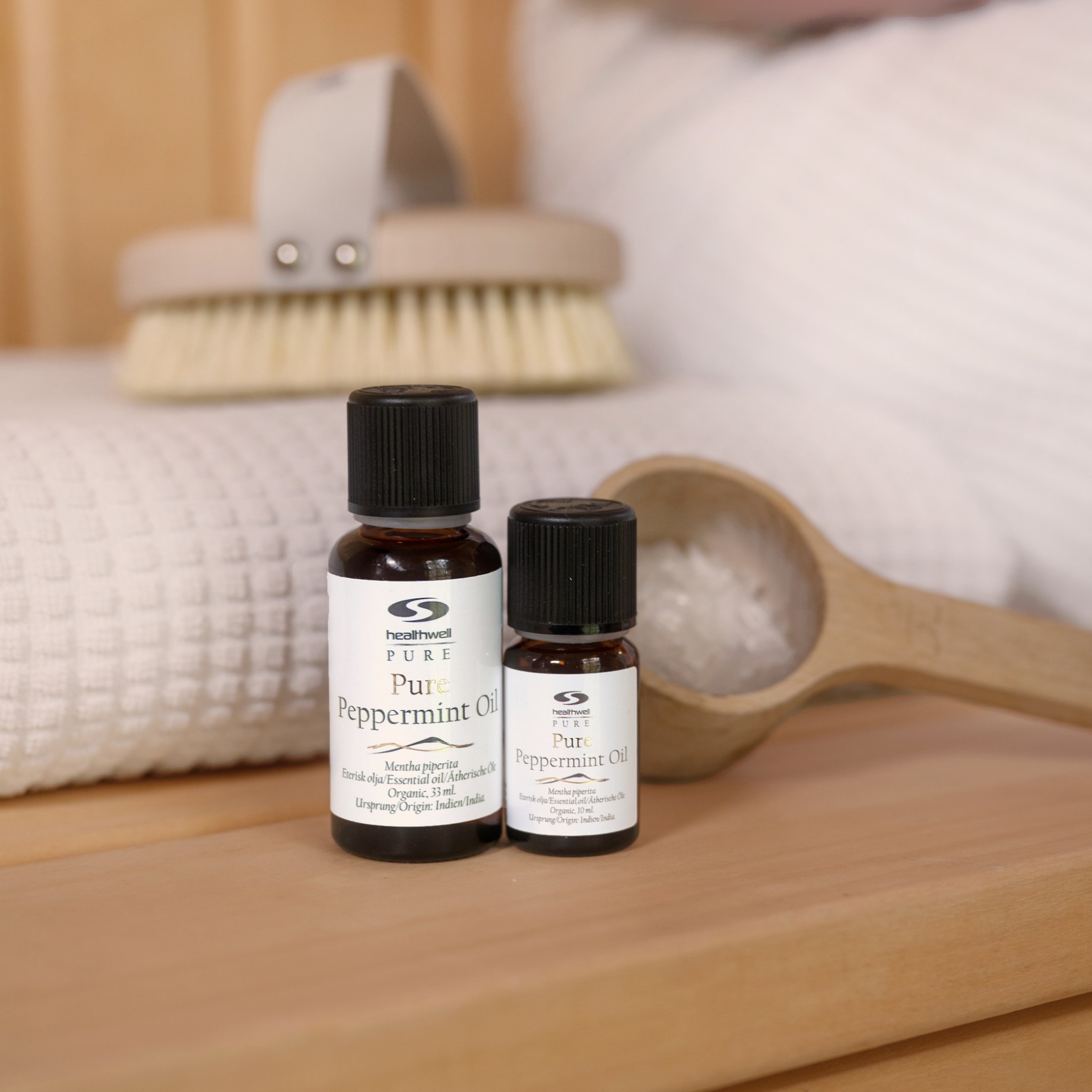 Healthwell PURE Piparminttuöljy Luomu on luomupiparmintun eteerinen öljy. Öljy valmistetaan höyrytislaamalla piparmintun lehtiä, jotta saadaan korkealaatuista ja erittäin tiivistettyä öljyä. Healthwell PURE Piparminttuöljy Luomu ei ole laimennettu ja se on lisäaineeton, minkä vuoksi se on markkinoiden parhaita öljyjä. Piparminttuöljyssä on erittäin voimakas tuoksu, joten tarvitset vain muutaman tipan joka käyttökerralla. Sekoita Healthwellin piparminttuöljy haluamasi perusöljyn kanssa viilentäväksi ihoöljyksi tai käytä aromilampussa levittääksesi ihanan raikasta tuoksua, jossa on heinän sävyjä.