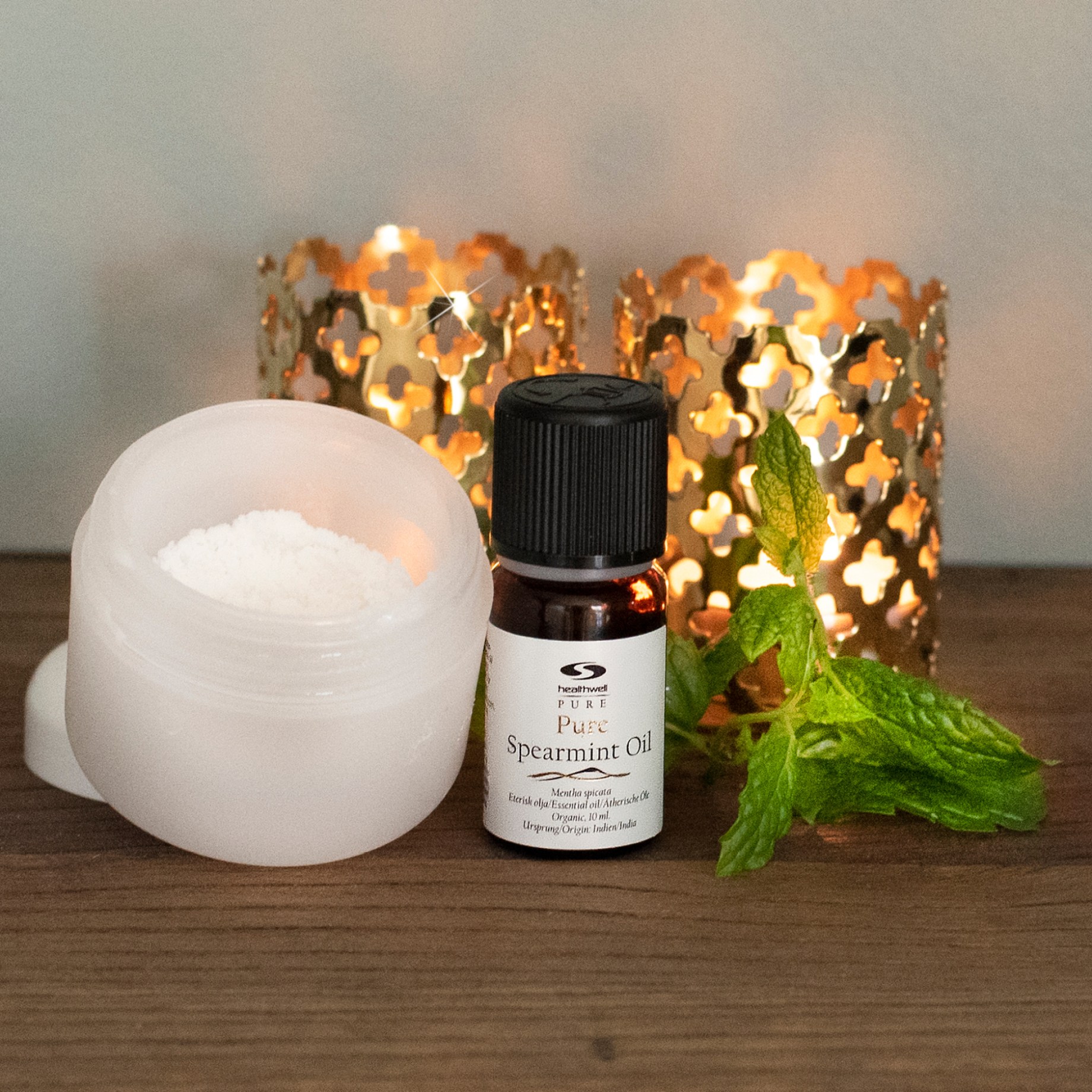 PURE Viherminttuöljy EKO on eteerinen öljy, joka sisältää viherminttua (Mentha spicata), joka tunnetaan myös englanninkielisellä nimellä spearmint. Vihermintulla on raikas ja virkistävä tuoksu, joka sopii erinomaisesti tuoksuttamaan ihonhoitotuotteita tai käytettäväksi aromaterapiassa virkistävän mielialan aikaansaamiseksi. Vihermintun tuoksu on hieman pehmeämpi kuin sen tunnettulla sukulaisella, piparmintulla. Healthwell PURE Viherminttuöljy EKO on valmistettu tislaamalla mintunlehtiä ja se on 100 % tiivistetty, joten se on erittäin riittoisa ja tehokas. Käytä laimennettuna toiseen öljyyn ennen käyttöä.