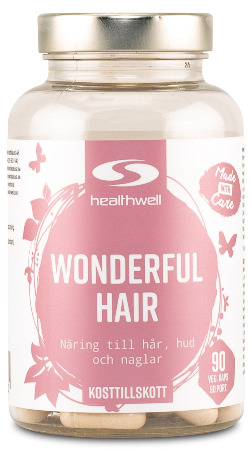 Healthwell Wonderful Hair koostuu huolellisesti valituista ainesosista terveille, kauniille hiuksille. Ravintolisä sisältää hyvin koostetun yhdistelmän vitamiineja, mineraaleja sekä luonnon kasviuutteita. Joitakin ainesosia ovat: