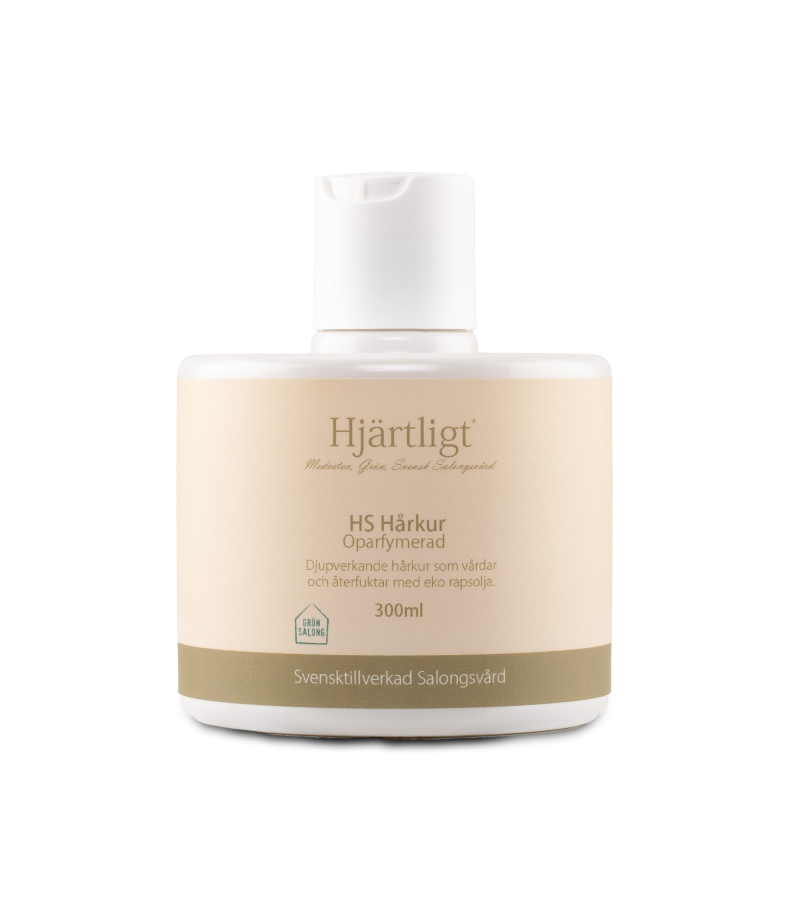 Hjärtligt Hiusnaamio sisältää vain biologisesti hajoavia ainesosia eikä se sisällä parabeenejä, silikonia, mineraaliöljyä, hormonitoimintaa häiritsevistä aineita eikä nanohiukkasia. Hiusnaamio on luonnonmukainen ja merkitty Green Salon -merkinnällä. Kaikki Hjärtligt-tuotteet valmistetaan Ruotsissa.