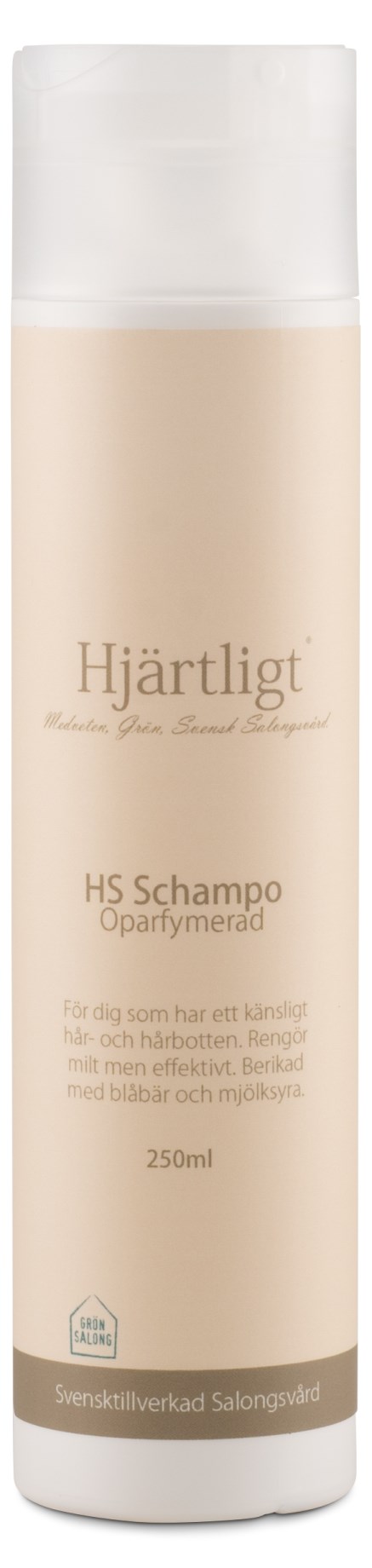 Hjärtligt High Sensitive Shampoo on salongin shampoo, joka on kehitetty erityisesti herkälle hiukselle ja herkälle hiuspohjalle. Hjärtligt HS Shampoo on mieto koostumus, joka perustuu luonnollisiin pesuaineisiin ja tarjoaa fantastisen tuloksen. Vapaa hajuvesistä, parabeeneista, nanopartikkeleista ja hormoneja häiritsevistä aineista. 100 % biologisesti hajoava ja Grön Salong -ympäristömerkin hyväksymä, mikä takaa ympäristöystävällisen sisällön.
