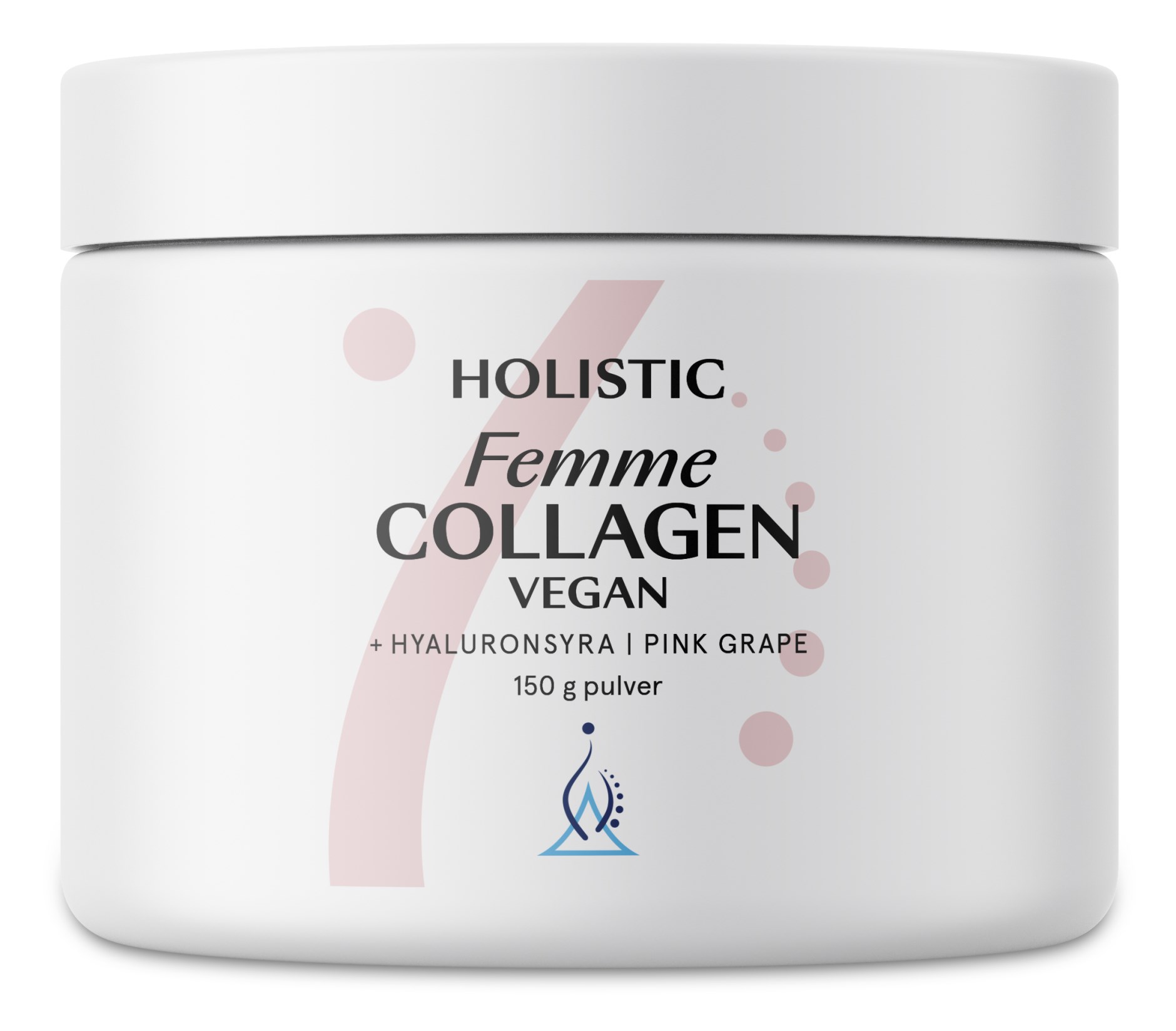 Pitkää huolta ihosta, hiuksista ja kynsistä Holistic Femme Collagen Vegan -valmisteella! Tämä kollageenijauhe maistuu hyvältä "pinkiltä greipiltä" ja on suunniteltu tukemaan ihon kollageenitiheyttä luonnollisella tavalla. Femme Collagen sisältää 100 % luonnollisia ainesosia, jotka on kehitetty edistämään hiusten, ihon ja kynsien terveyttä. Sen ainutlaatuinen vapaiden aminohappojen koostumus tekee siitä helposti imeytyvän ja käytettävän keholle. Lisäksi se on rikastettu hyaluronihapolla ja on identtinen ihmisen tyyppi 1 kollageenin kanssa, mikä tekee siitä ihanteellisen lisäravinteen ihon elinvoimaisuuden ja kimmoisuuden säilyttämiseen.