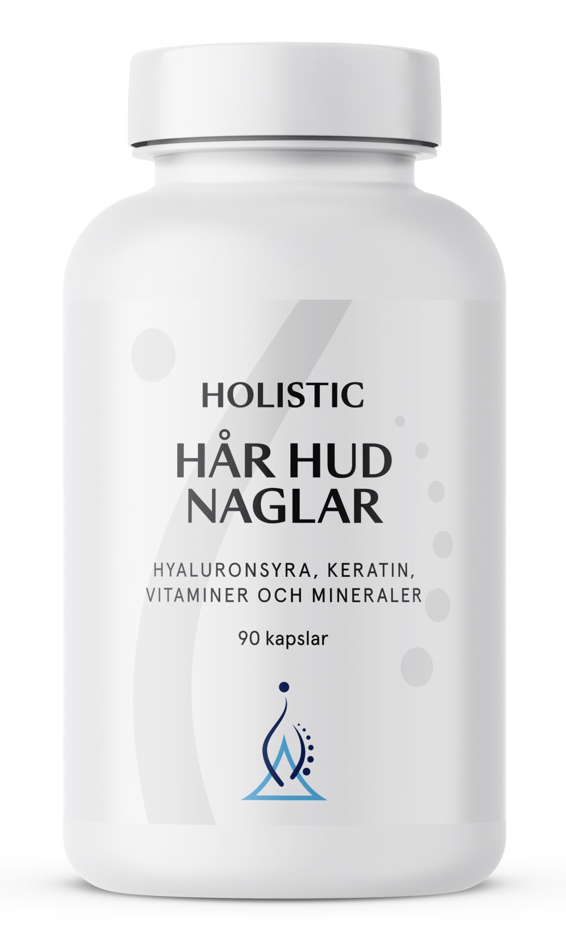Holistic Hiukset-Iho-Kynnet on ravintolisä, joka sisältää kasvipohjaista hyaluronihappoa Haplex Plusista, liukoista keratiinia lampaanvillasta, piitä bambu-uutteesta sekä vitamiineja ja kivennäisaineita. Se auttaa sinua ylläpitämään kynsien laatua sinkin ja seleenin avulla. Sinkki, seleeni ja biotiini edistävät normaalin hiusten kasvun ylläpitämistä, ja C-vitamiini toimii antioksidanttina edistäen normaalia kollageenin muodostumista, mikä on tärkeää ihon normaalille toiminnalle. Myös A-vitamiini, niasiini, riboflaviini ja jodi edistävät normaalin ihon ylläpitämistä. Kupari edistää ihon ja hiusten pigmentaatiota. Käytä ravintolisää monipuolisen ja tasapainoisen ruokavalion sekä terveellisen elämäntavan ohella.