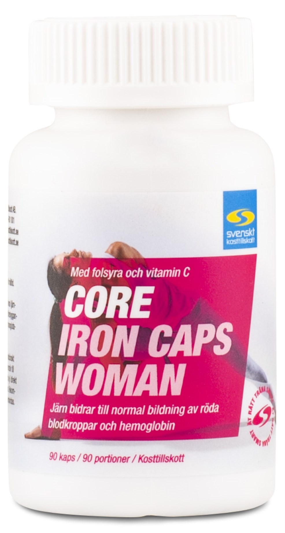 Ravintoaine rauta on tärkeä monille kehon toiminnoille, ja rauta on myös yksi harvoista aineista, joita elimistö ottaa heikosti vastaan. Core Iron Caps Woman sisältää päivittäisen annoksen rautaa, sekä C-vitamiinia, joka lisää raudan imeytymistä, ja foolihappoa, joka edistää normaalia verenmuodostusta. Rauta auttaa pääasiassa punaisten verisolujen ja hemoglobiinin muodostumisessa, joka kuljettaa happea kehossa. Rauta on myös tärkeä toimivan immuunijärjestelmän kannalta, dopamiinin tuotannolle, joka vaikuttaa sekä lihaksiin että mielialaan, ja normaalin energiatasojen ylläpitämiseksi niin, ettet tunne itseäsi epätavallisen väsyneeksi tai uupuneeksi.